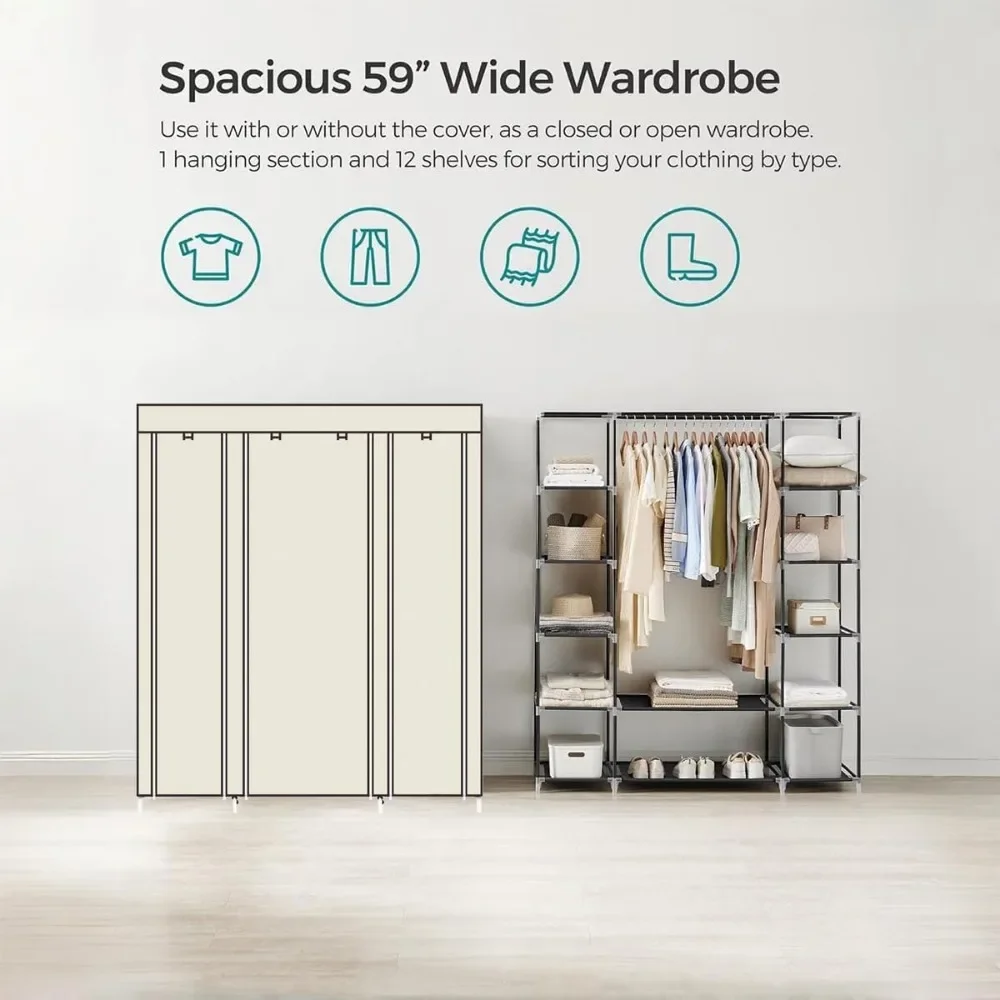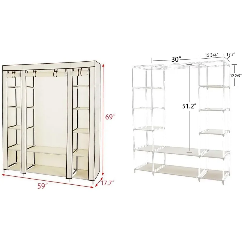 Portable Cloth Wardrobe Closet Organizer with Cover & Zipper