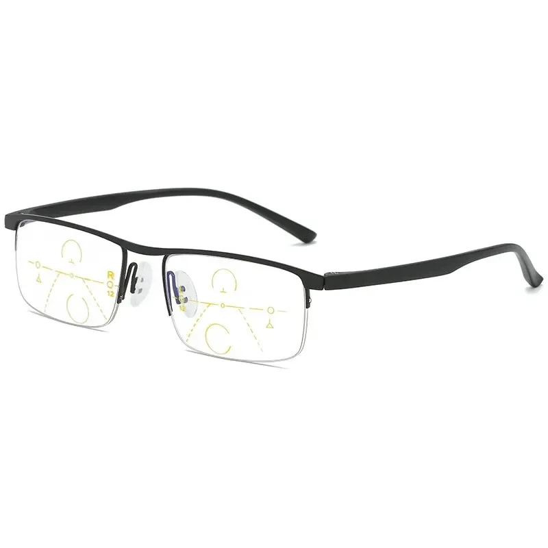 These progressive multifocal reading glasses are perfect for everyday use, designed for both men and women. Featuring a durable stainless steel frame and clear plastic lenses with anti-reflective coating, they reduce glare and enhance visual comfort. The sleek half-frame rectangle style combines classic design with modern functionality, supporting presbyopia correction from +100 to +400. Lightweight and unisex, these glasses offer reliable eye protection with anti-blue light elements, making them an excellent choice for casual wear and prolonged reading sessions.
