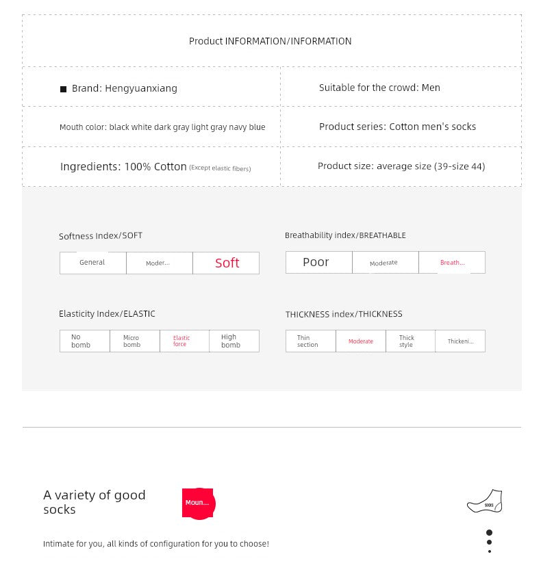 Pure Fresh Cotton Four Seasons Youth or Men's Socks