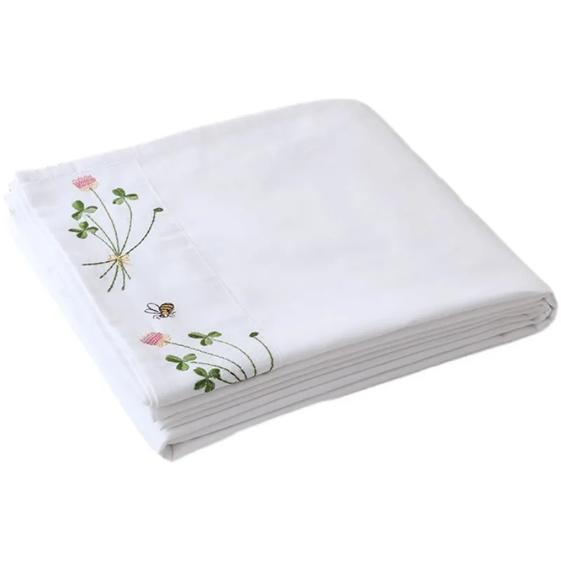 Pure White Bedding Sheet Floral Embroidery Flat Sheets 100% Cotton Bedding Luxury Bedspread Home Textiles Queen King Size