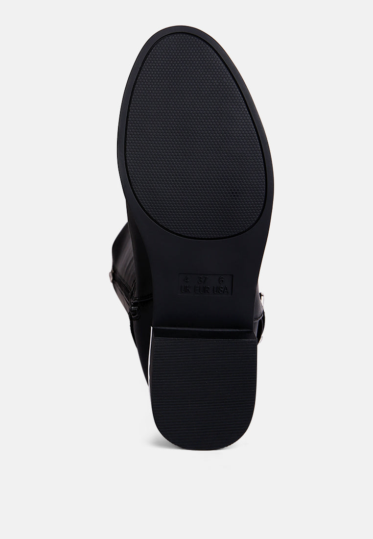 Renny Buckle Strap Embellished Calf Boots