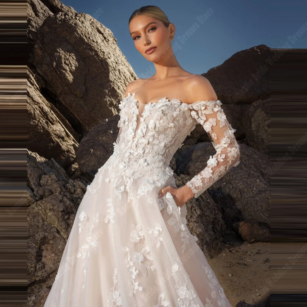 This customized romantic bridal gown showcases a sweetheart neckline with a sleeveless, backless design for a captivating silhouette. Crafted from soft tulle and embellished with intricate appliques, draping, ruching, and pleats, it features an elegant A-line silhouette with a natural waistline and a graceful sweep train. This floor-length dress embodies a boho-inspired charm, making it an ideal choice for brides seeking both comfort and sophistication, including those expecting.
