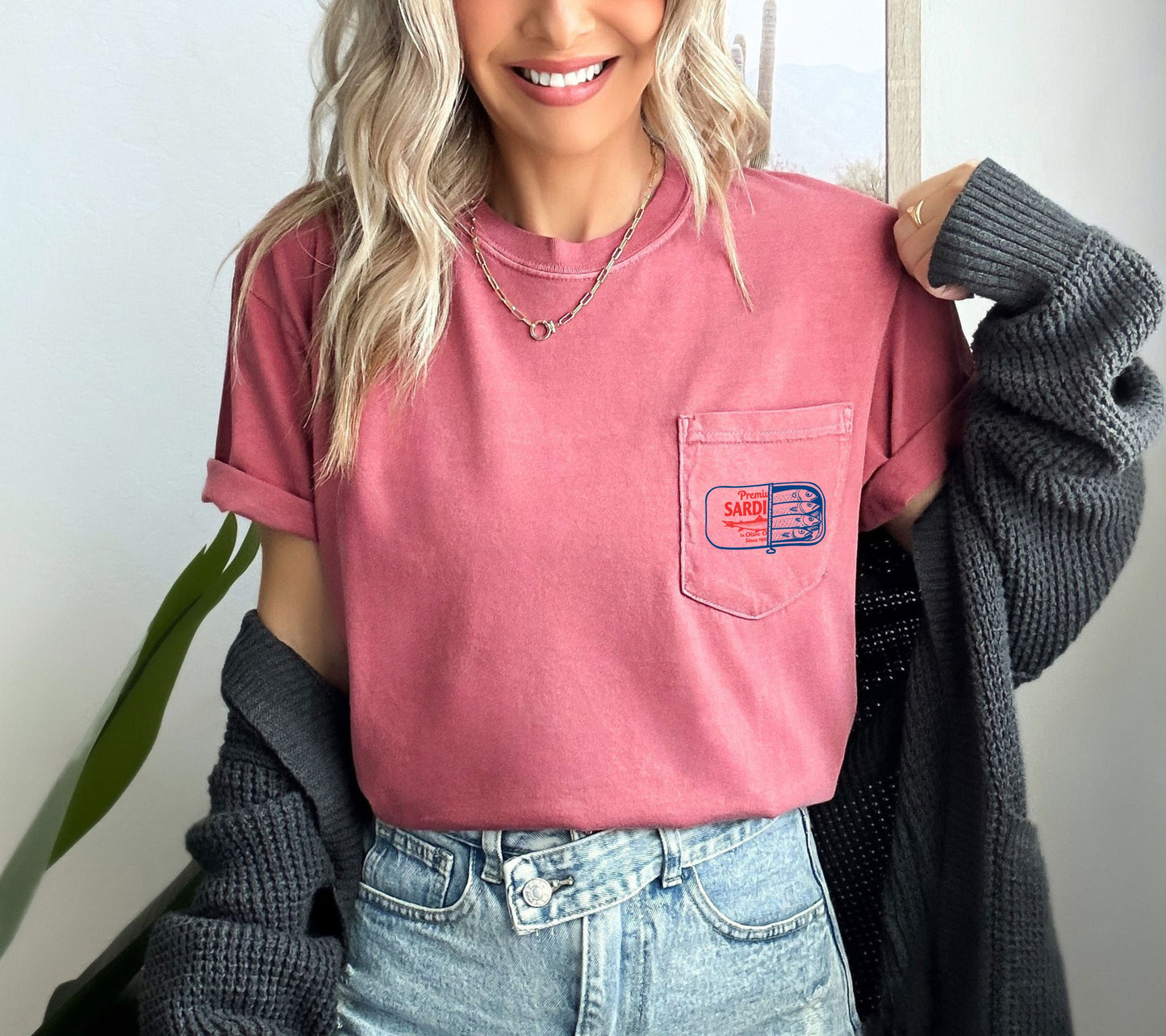 Sardines Salmon Fish Vacation Lake Beach Nature Comfort Colors Pocket T Shirt | Camping, Hiking, Plant