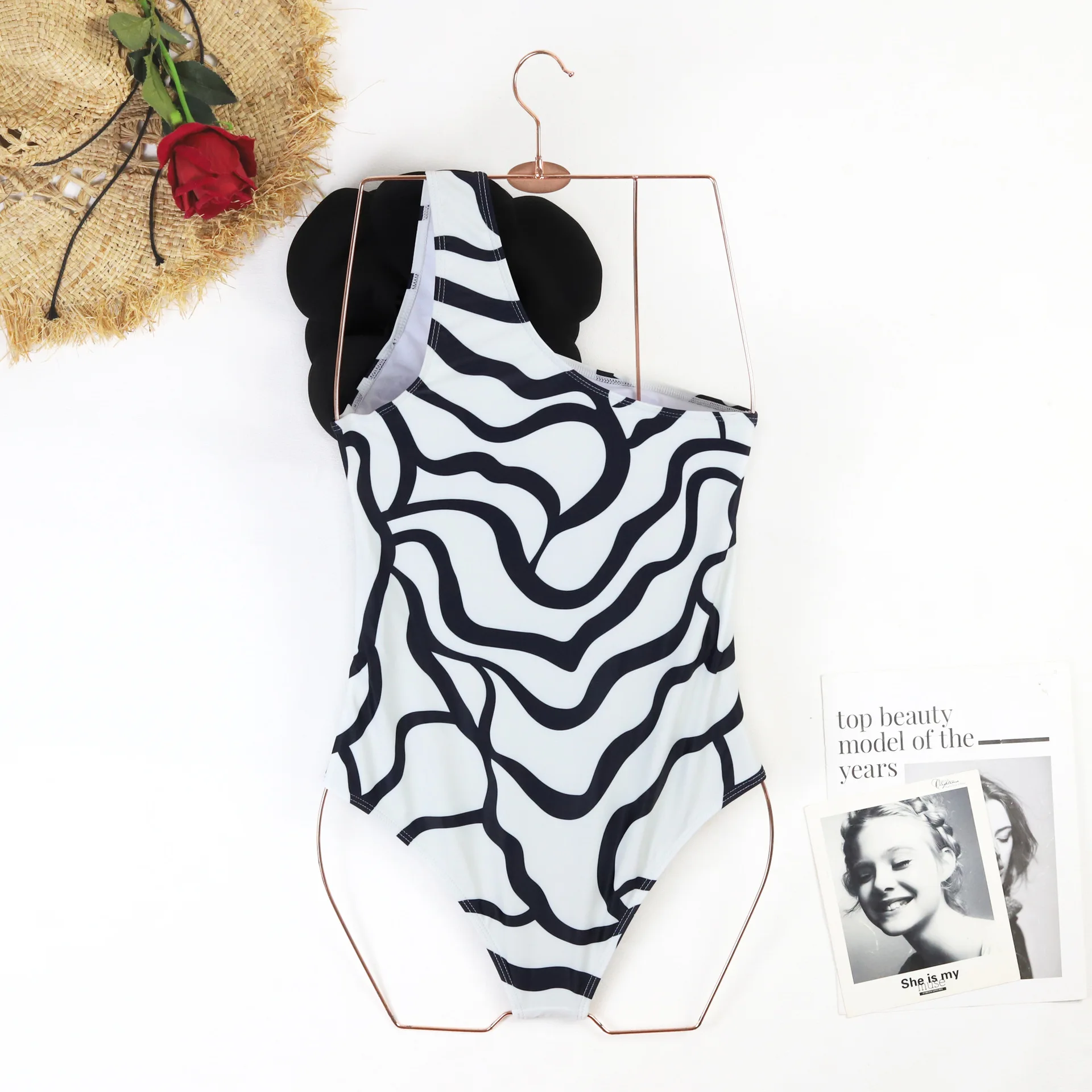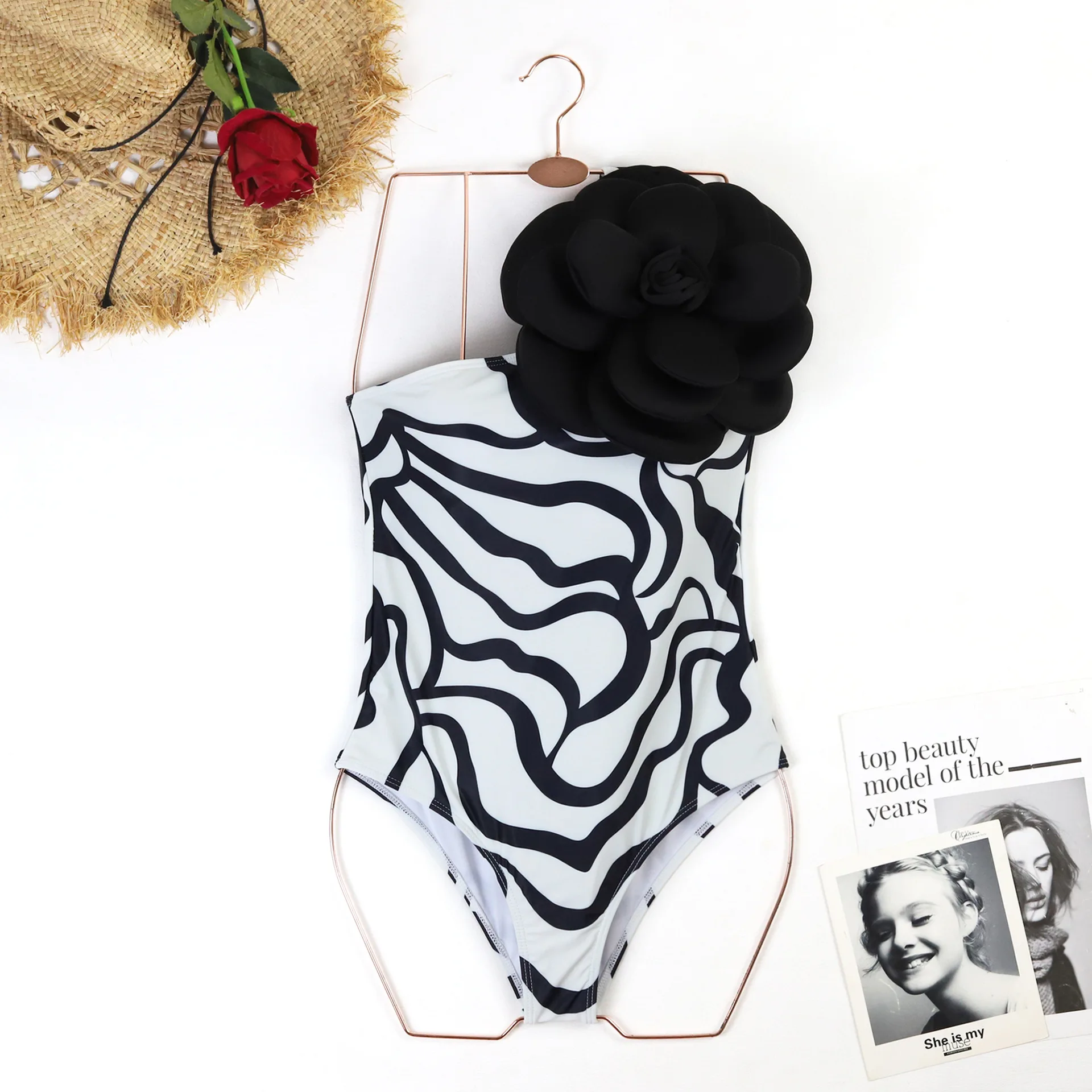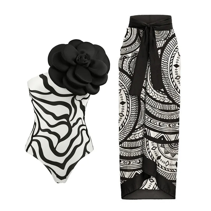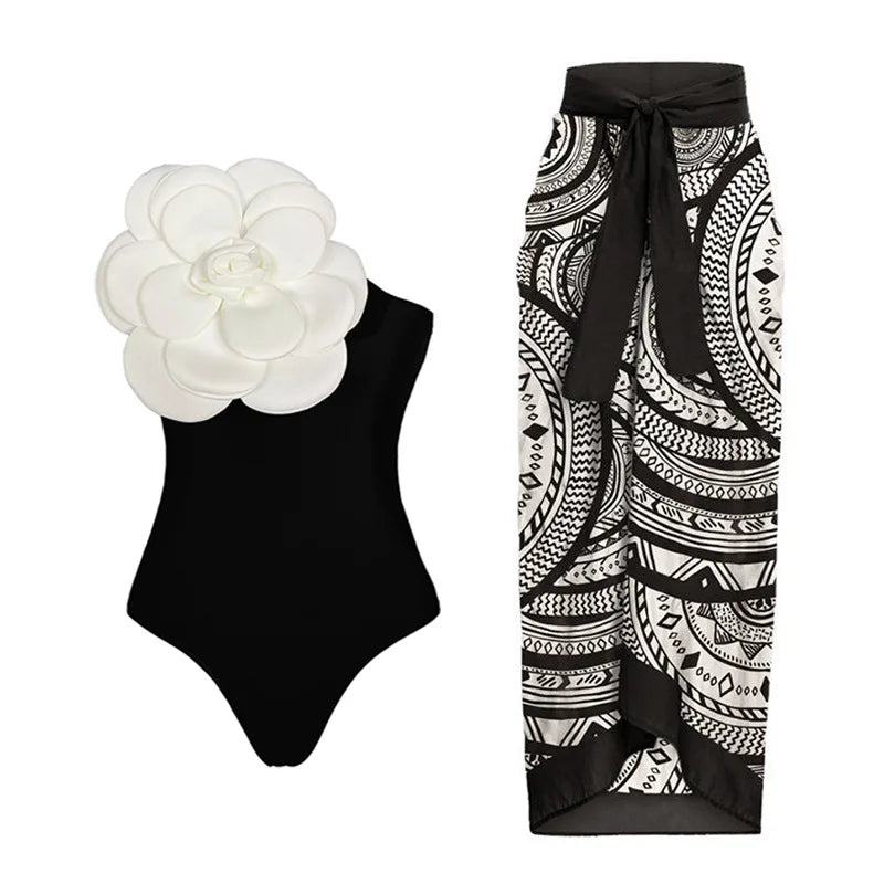 Single Shoulder 3D Large Flower Swimsuit Set Cover Up Single Piece Item Sexy One-piece Swimsuit Girl Vacation Beach Wear New2024