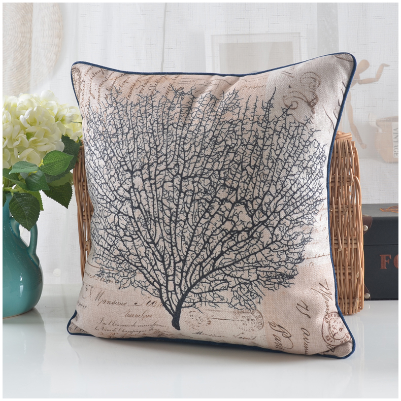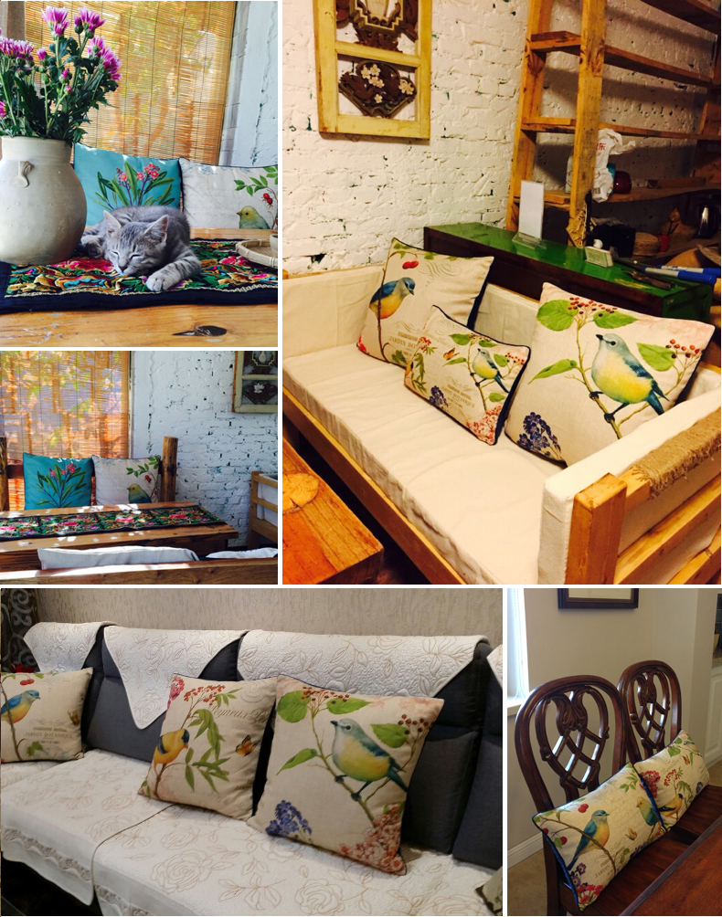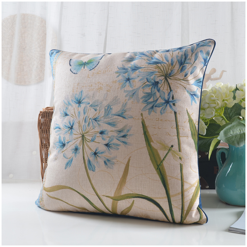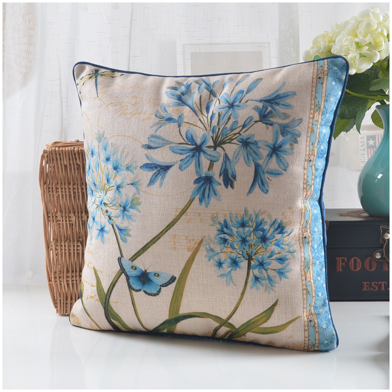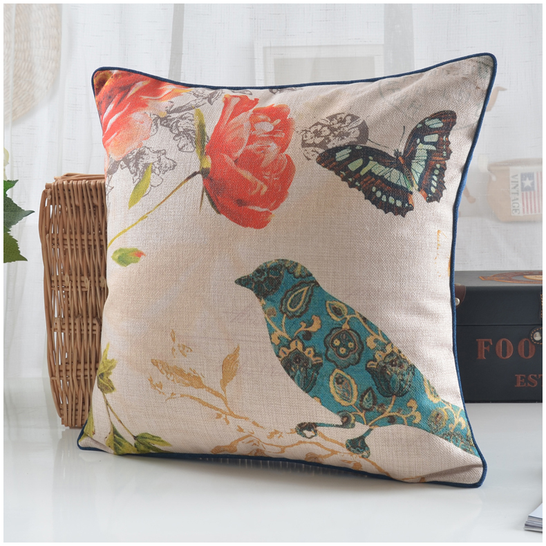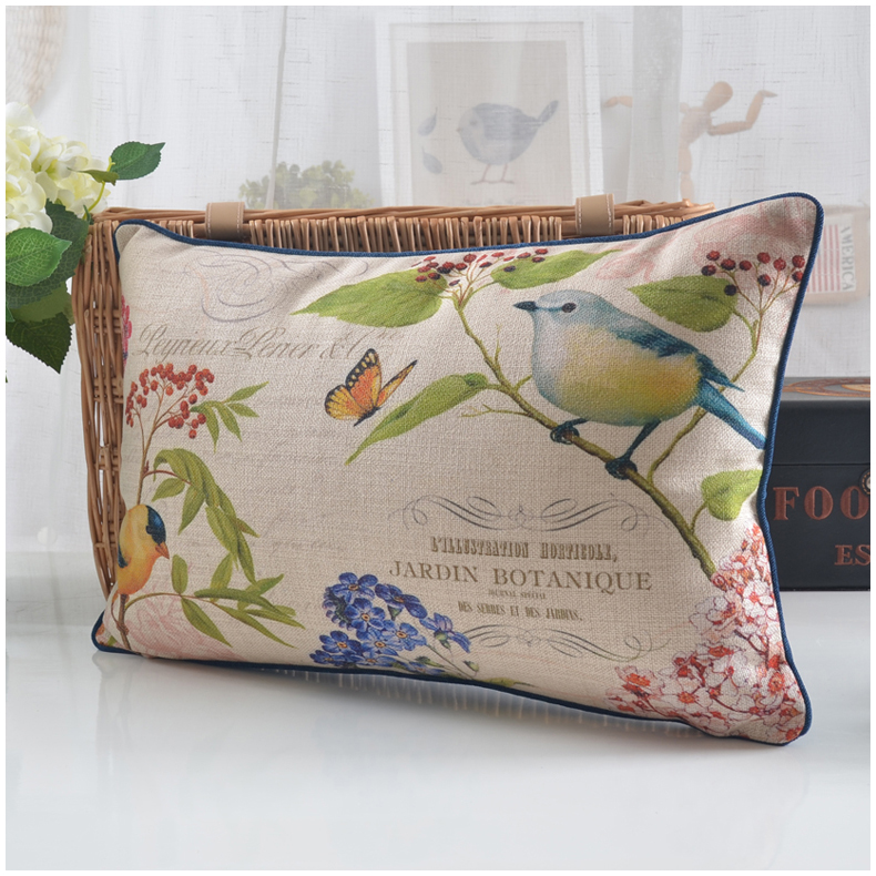 Sofa Pillow Cotton and Linen Thick Flower and Bird Back Seat Cushion Pillow Office