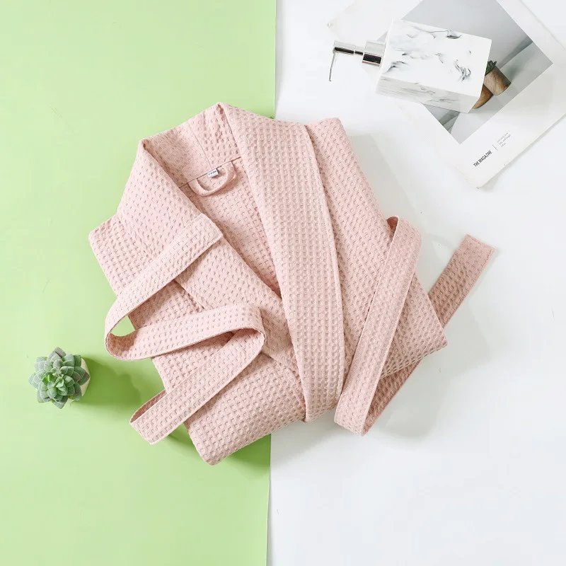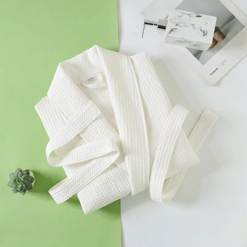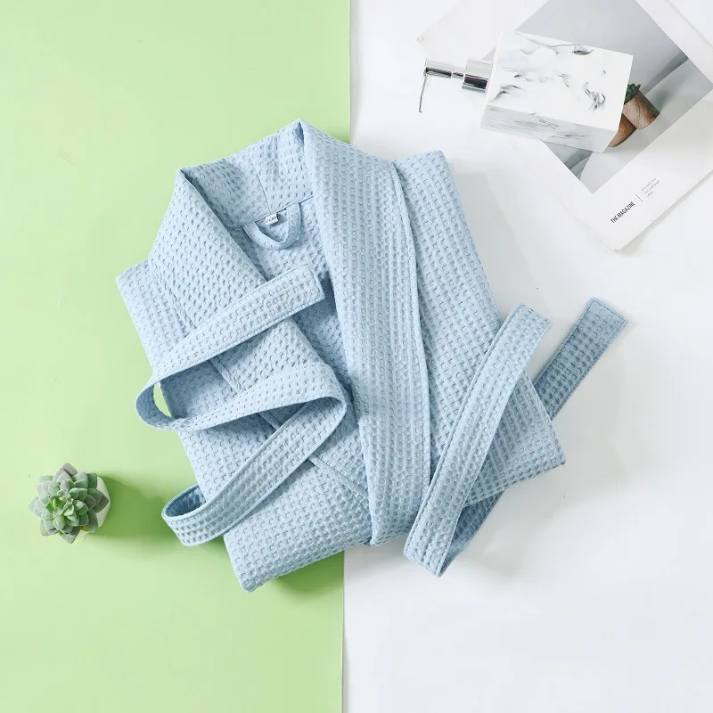 Solid Color Cotton Spring and Autumn Waffle Couples Mid-long Yukata Bathrobe Homestay Hotel Couple Soft Bathrobes