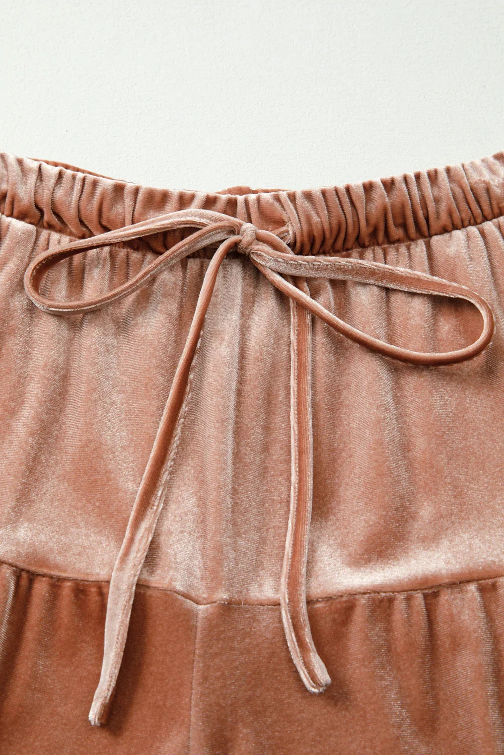 Straw Yellow Mineral Wash Lace-up High Waist Tiered Flared Pants