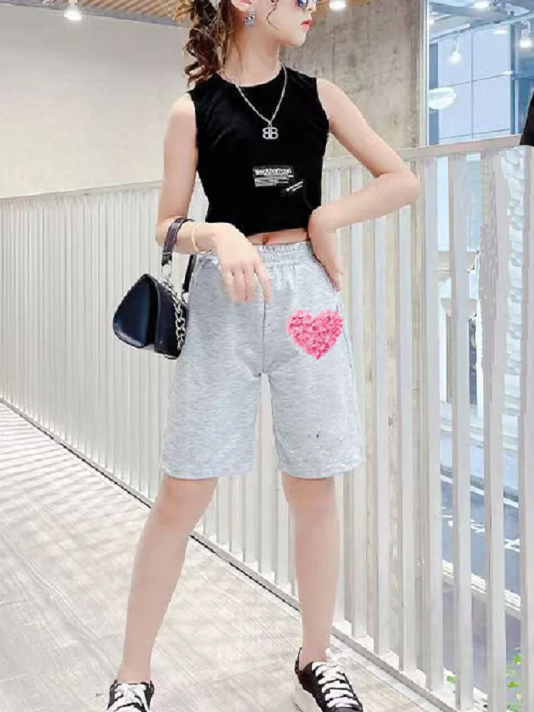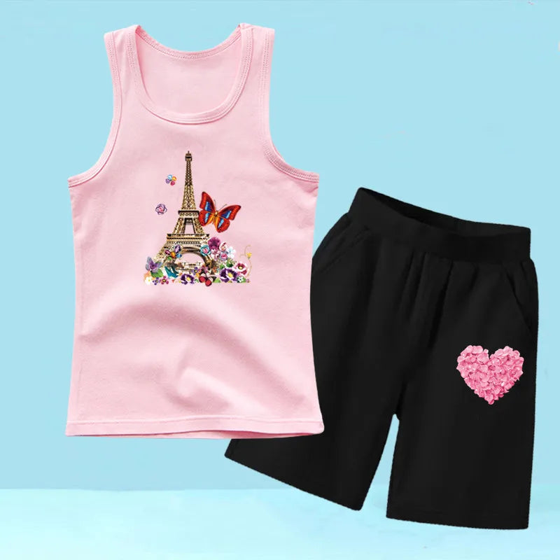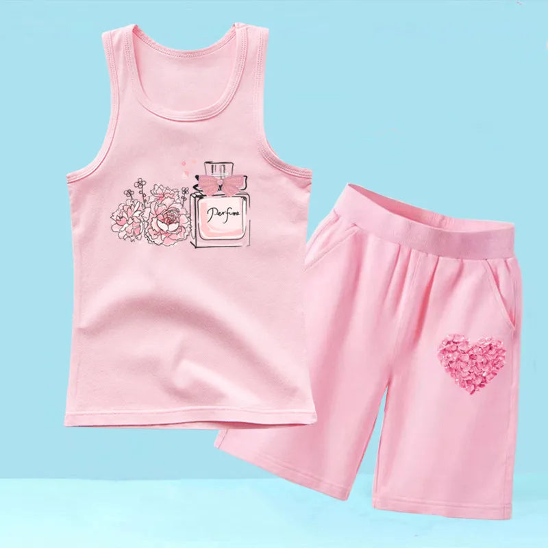 Summer Girls 2PCS Vest Set Perfume Bottle Print Sleeveless Top and Shorts