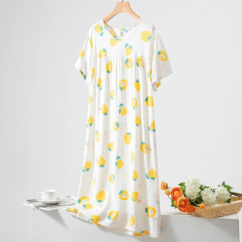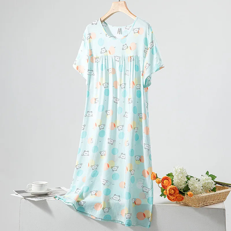 Summer Women Nightgown Short Sleeve Round Neck