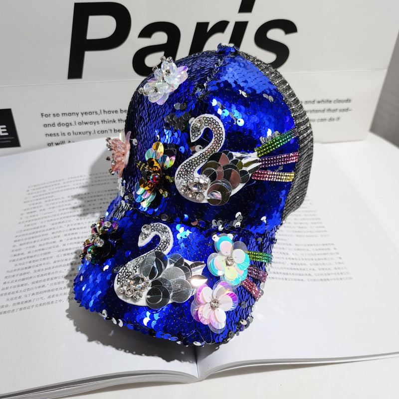 Swan Flower Sequins Ladies Baseball Cap Big Brim Breathable Mesh Hat Handmade Fashion Nightclub Stage Cap