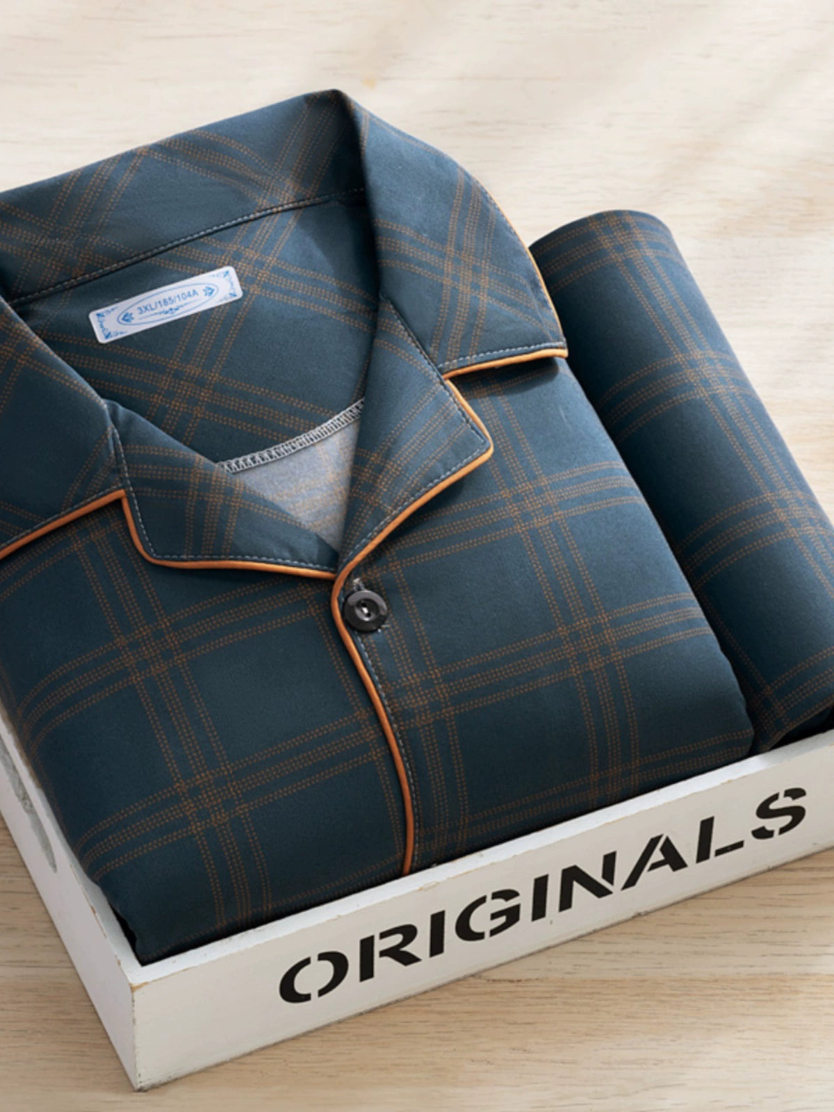 Men's Pajamas Sleepwear Long Sleeves Pants Two-piece Set Pure Cotton