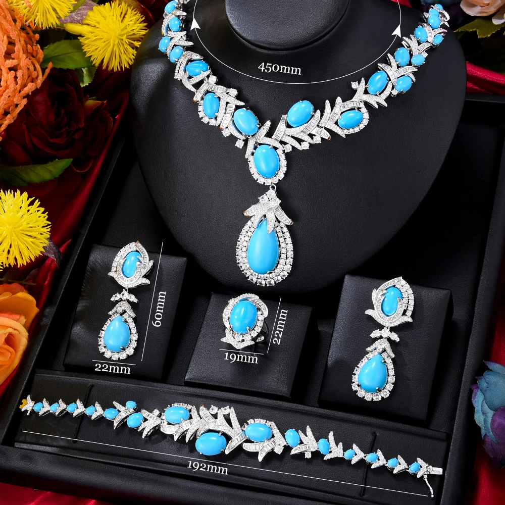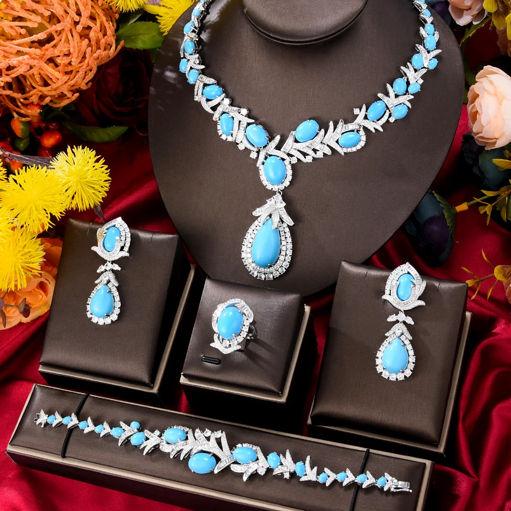 Turquoise Dubai Jewelry Sets For Women CZ Zircon Necklace