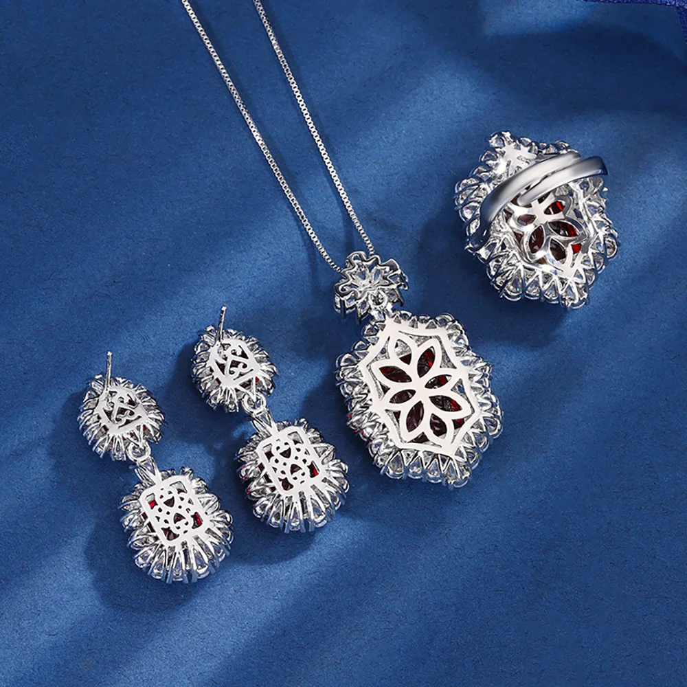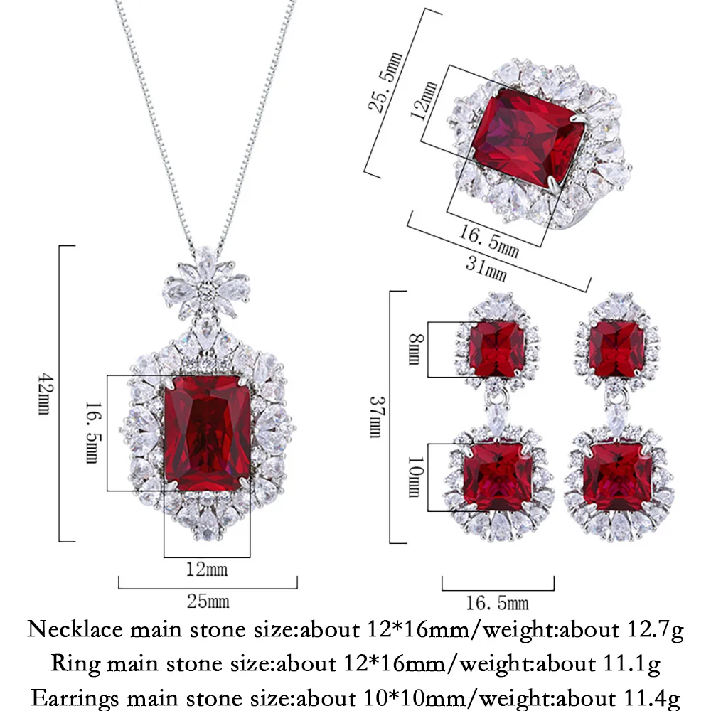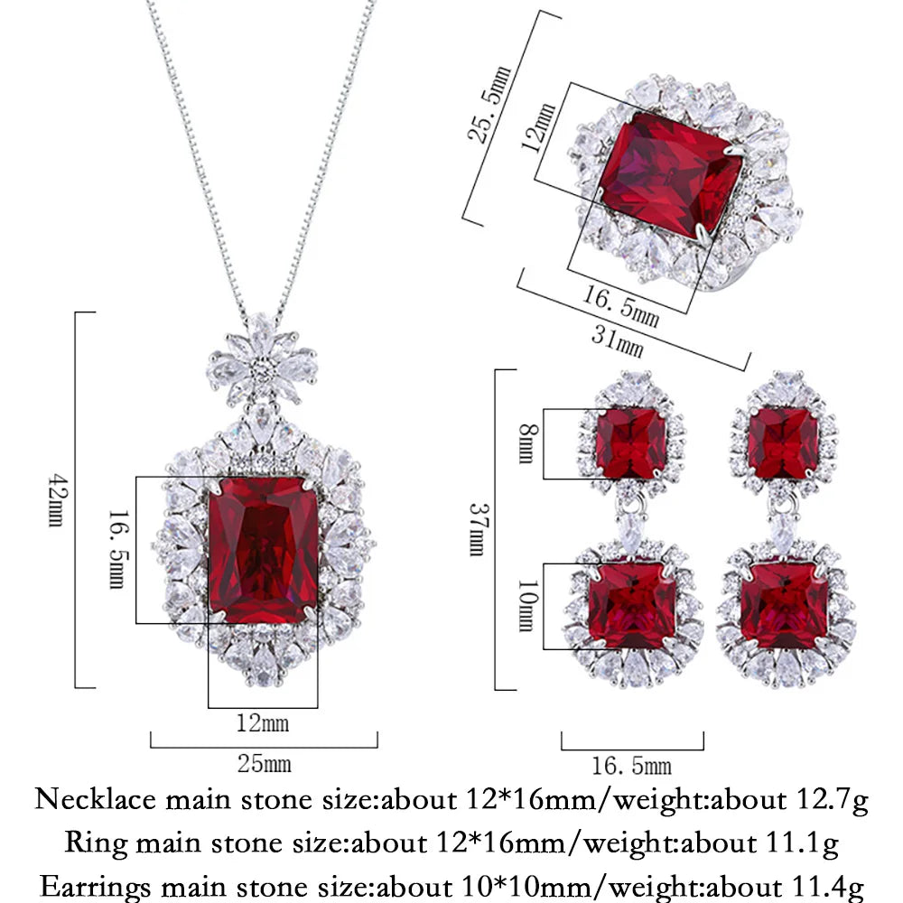 Ruby Necklace Pendant Rings Dangle Earrings Lab Diamond Fine Jewelry Sets