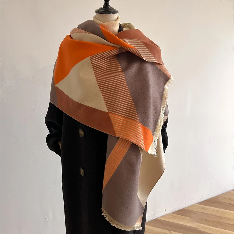 This vintage-inspired thick scarf wrap is designed to keep you warm during winter. Made from polyester with a geometric pattern, it measures 185 by 65 cm, providing ample coverage and comfort. Crafted for casual wear, this fashionable scarf combines style and functionality without harmful chemicals, making it a cozy accessory for cold days.