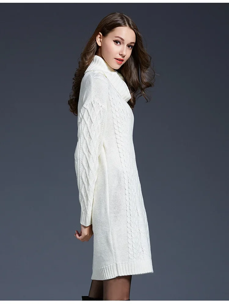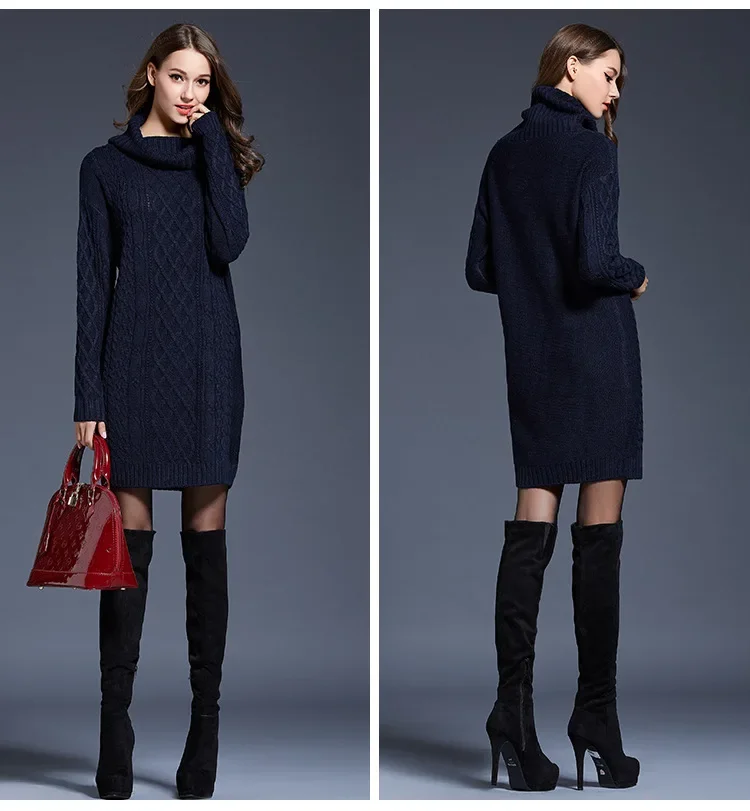 Warm Knitted Comfortable Casual Collar Pullover Sweater Long Sleeved Dress