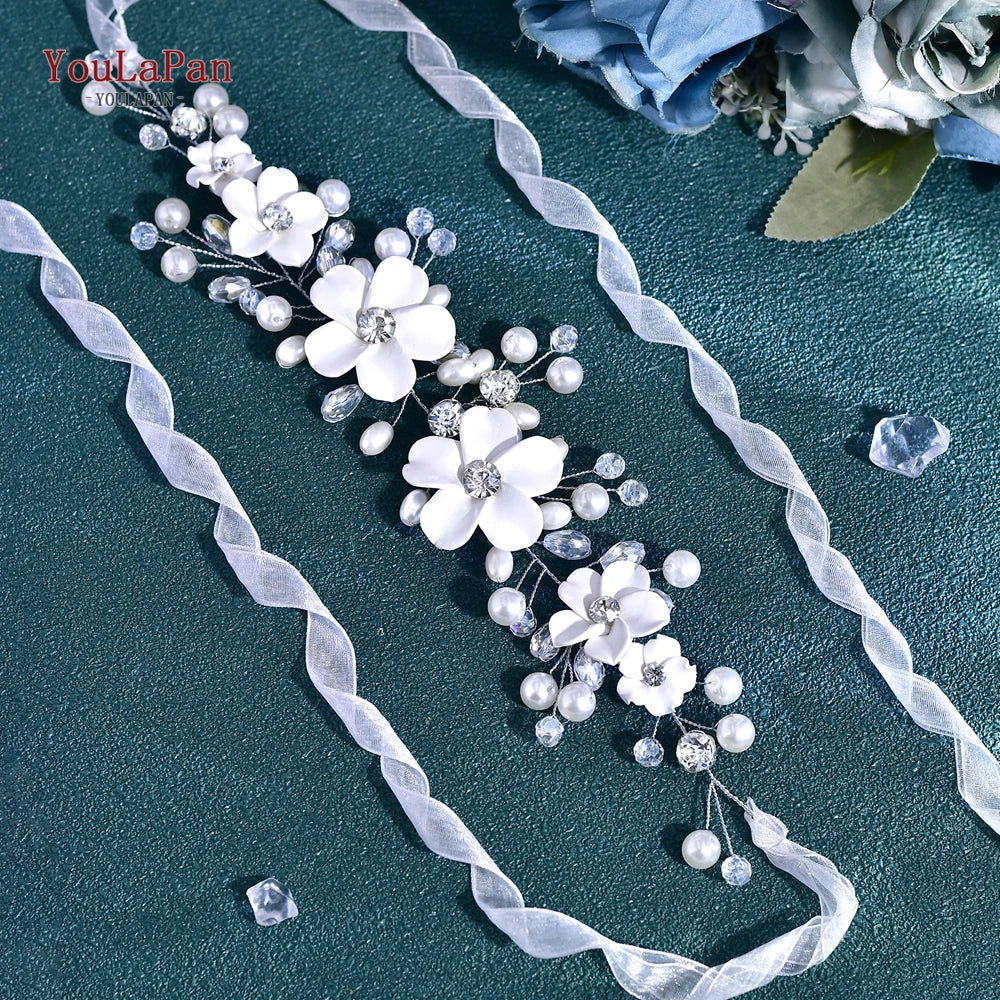 This elegant wedding sash belt features pearls, flowers, and crystal embellishments, making it a perfect accessory for brides and prom attendees. Whether you’re looking for a beaded or floral belt, this versatile sash enhances any wedding dress with delicate charm and sophistication. Ideal for adding a refined touch to your bridal gown or special occasion outfit.