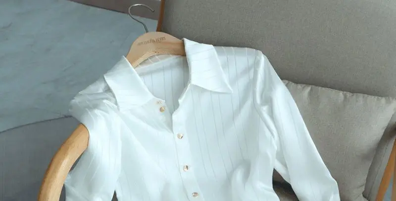 White Striped Shirt For Women's Single Breasted Loose Fitting Shirt