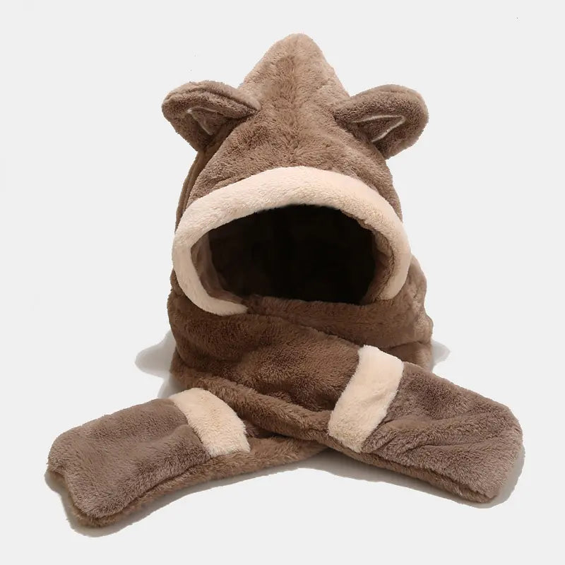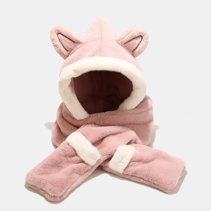Stay warm and cute with this super-soft imitation rabbit fur set. Features a plush winter hat with adorable cat ears, integrated scarf, and mittens. Available in beige, blue, khaki, pink, and white—perfect for cold weather and adding a playful touch to any outfit.