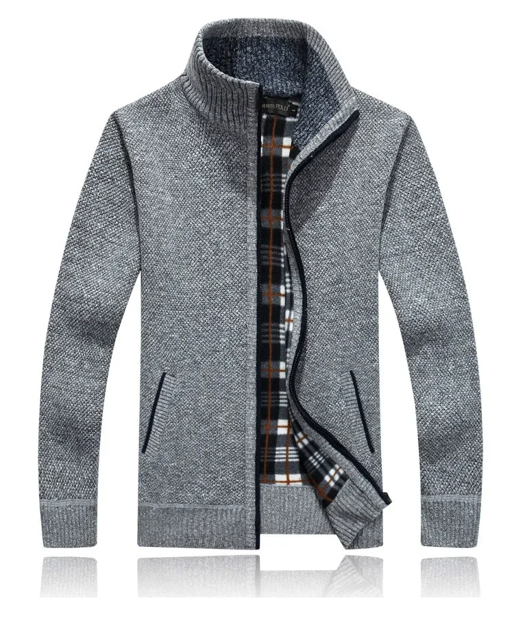 Winter Men's Knitted Sweater Coat Long Sleeve Thick Cardigan Fleece Zipper Causal Solid Color