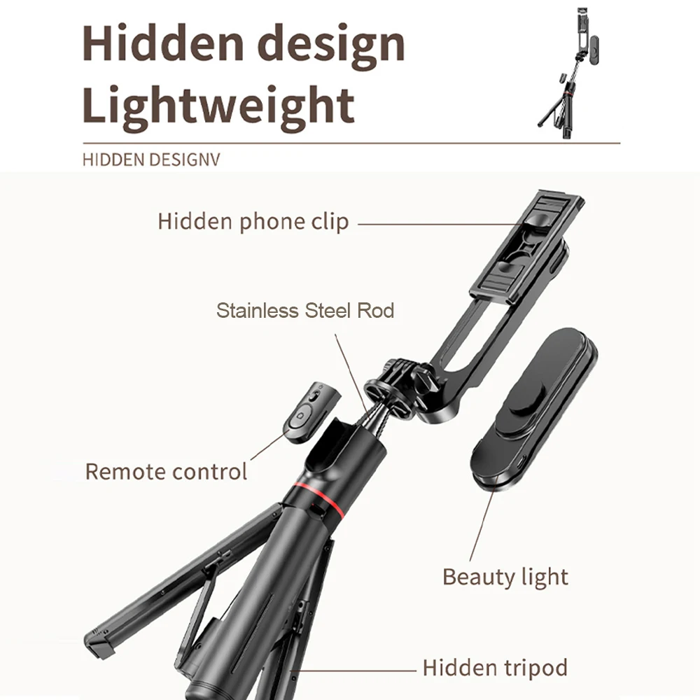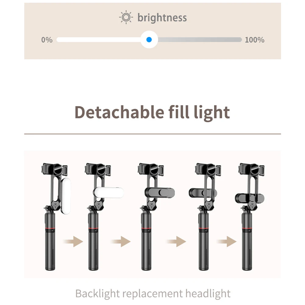 Wireless Selfie Stick Tripod Stand with Detachable Fill Light Remote Control Aluminum Alloy Stable Shooting Vlog Live Streaming
