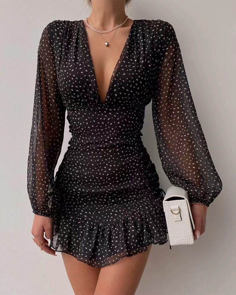 This V-long sleeve dress is designed for casual wear, making it a versatile addition to any wardrobe. Its simple yet chic design makes it suitable for various occasions. The dress features a comfortable V-neck design that ensures a snug yet relaxed fit. It's perfect for those who value both style and comfort in their garments. The dress boasts a eye-catching short length, adding a unique and stylish touch to your outfit. Its short length makes it a standout piece that can effortlessly elevate your fashion game. Made from high-quality materials, this dress promises durability and longevity. It's designed to withstand multiple washes while maintaining its quality and appearance. With its V-neck design, this dress is easy to put on and take off. It's a convenient choice for those who prioritize ease of use in their clothing items. This dress is designed for year-round wear, making it a valuable addition to any wardrobe. Its versatile design allows it to be worn in all seasons.