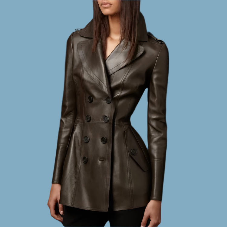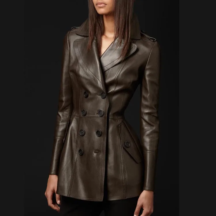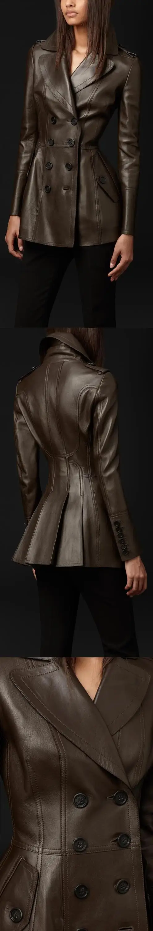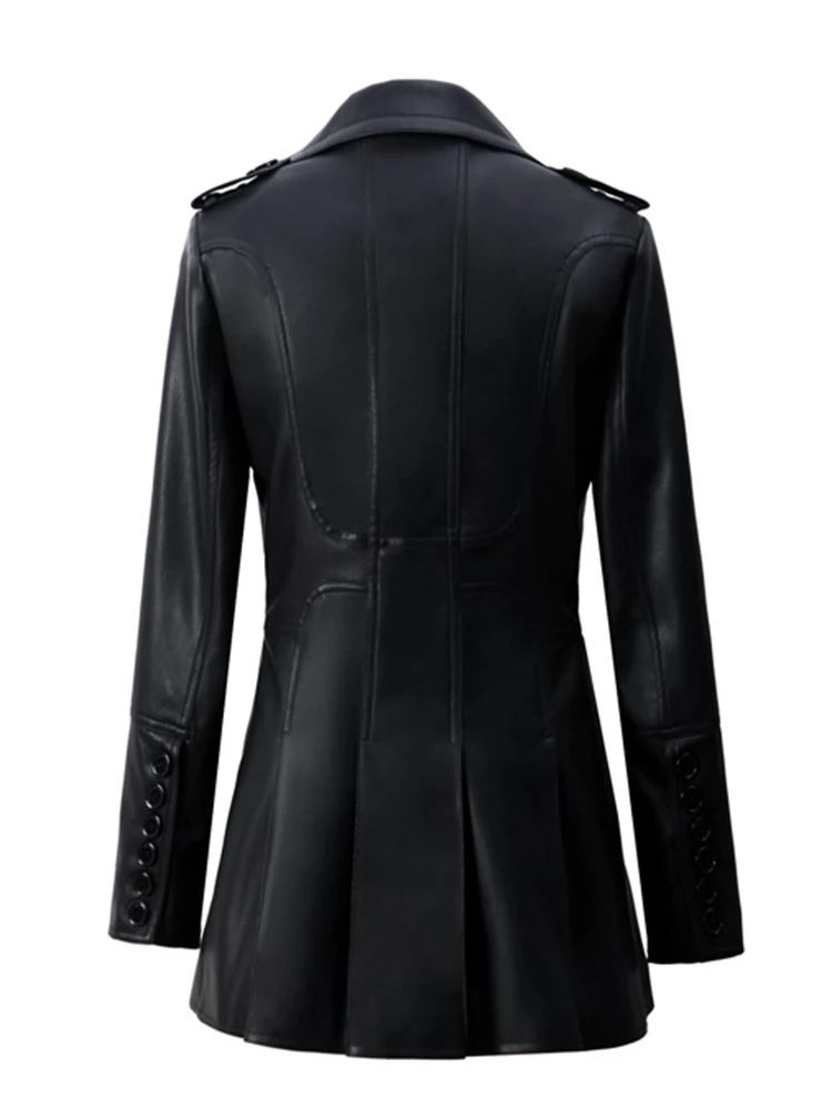 Women Elegant Luxury Fitted Soft Faux Leather Blazer Jacket Double Breasted