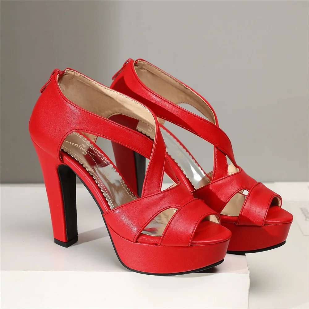 Women Sandals Zipper Ankle Strap Cross Tied High Heels Platform Shoes