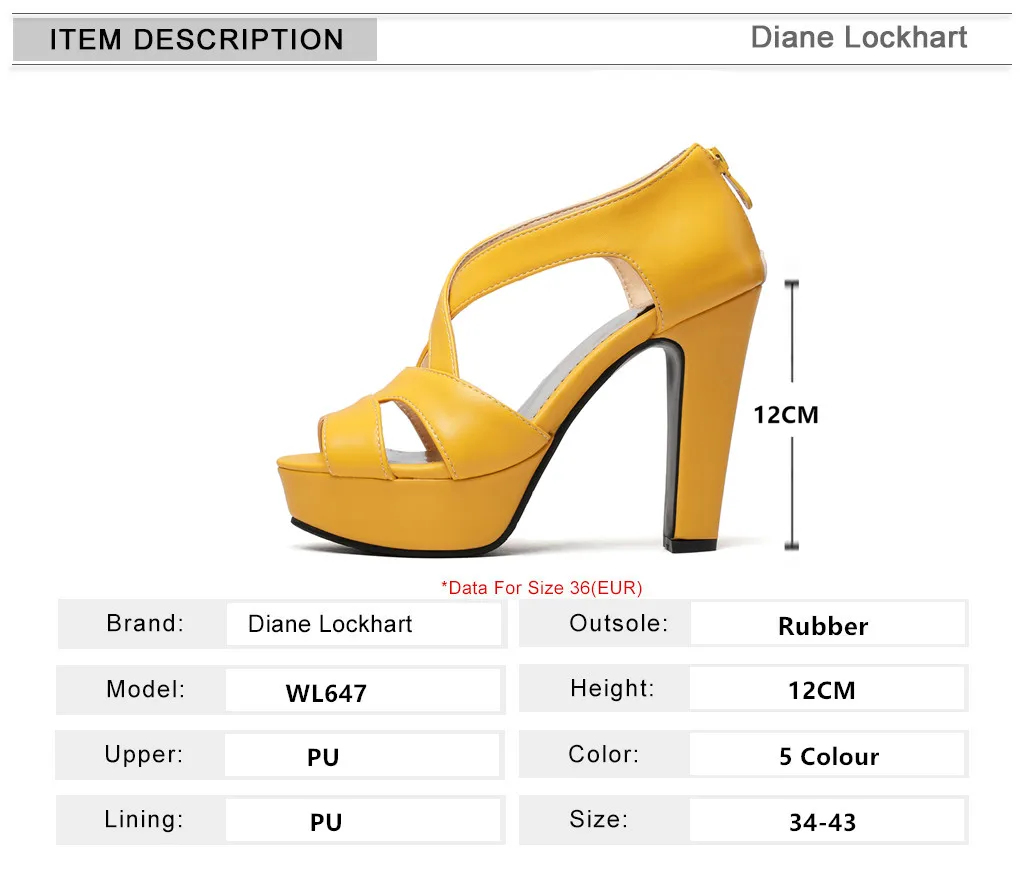 Elevate your style with these Diane Lockhart gladiator sandals featuring a commanding 12cm square heel and 3cm platform for dramatic height without sacrificing stability. The zipper closure ensures easy wear while the PU upper and rubber outsole deliver both sophistication and durability. Available in striking White, Black, Red, Yellow, and Blue, these versatile sandals transition effortlessly from casual outings to statement-making occasions. True-to-size in ranges 34-43, these cross-tied high heels blend ROME-inspired design with modern LEISURE comfort—perfect for making an unforgettable impression all season long.