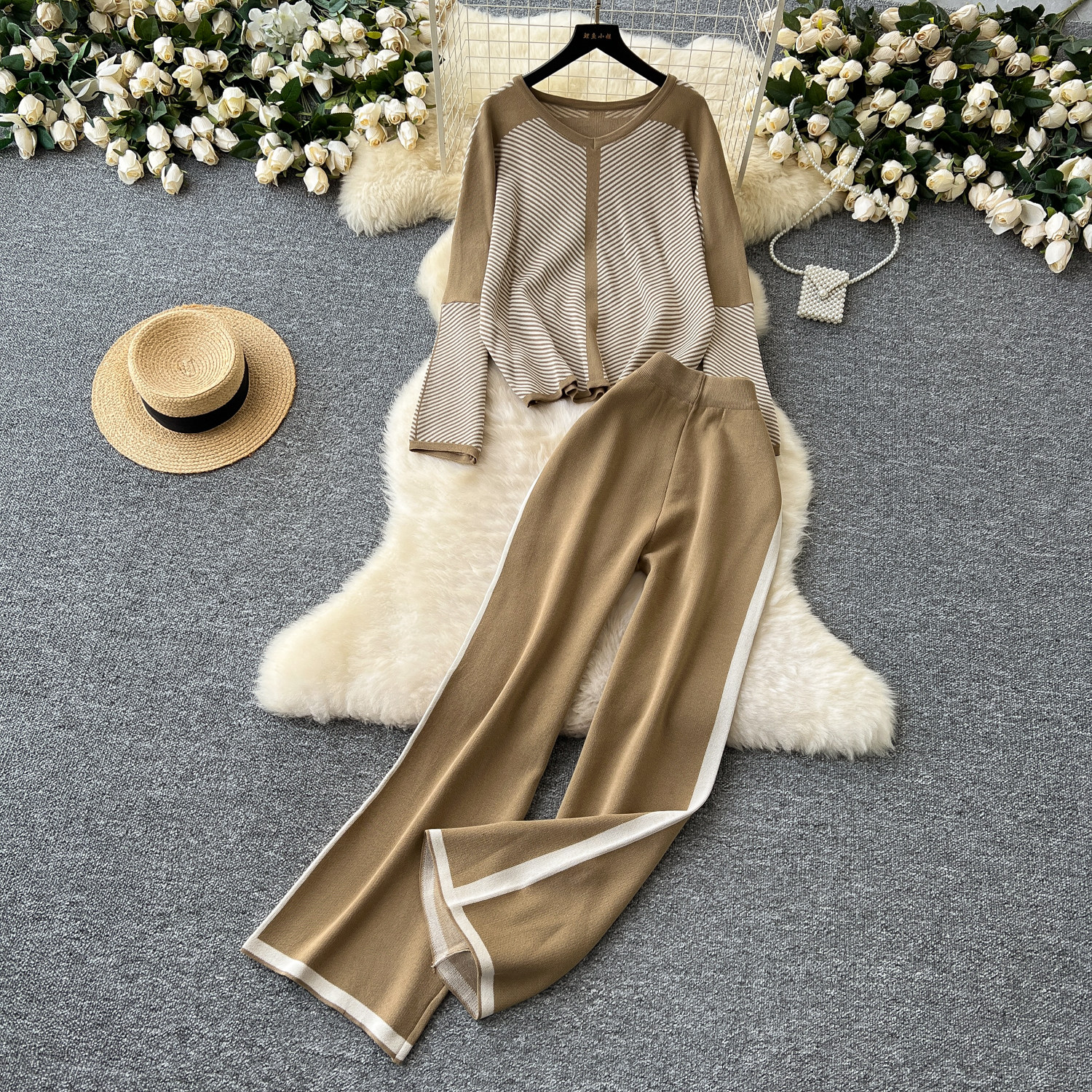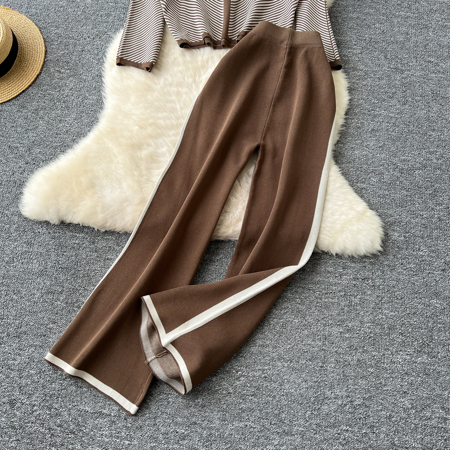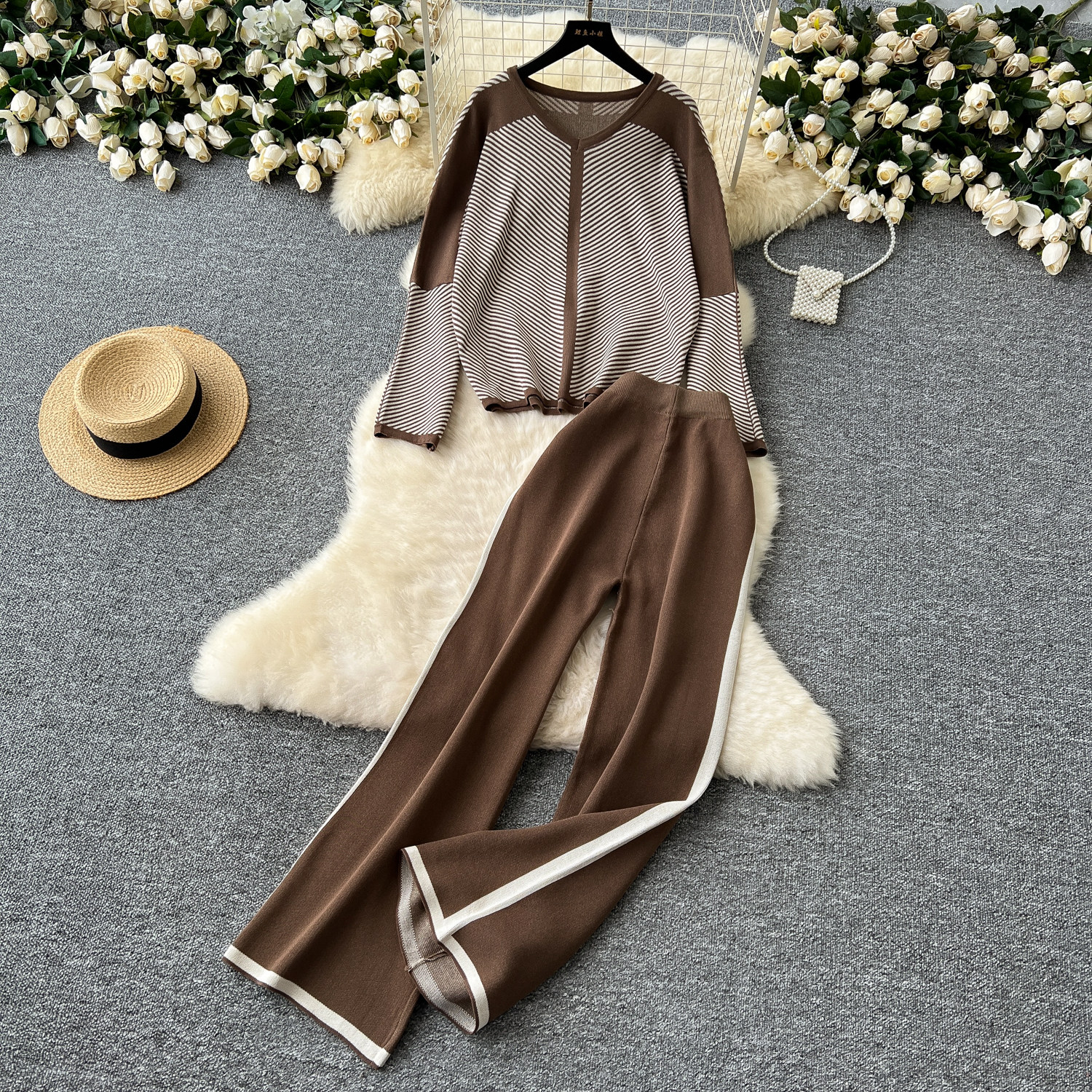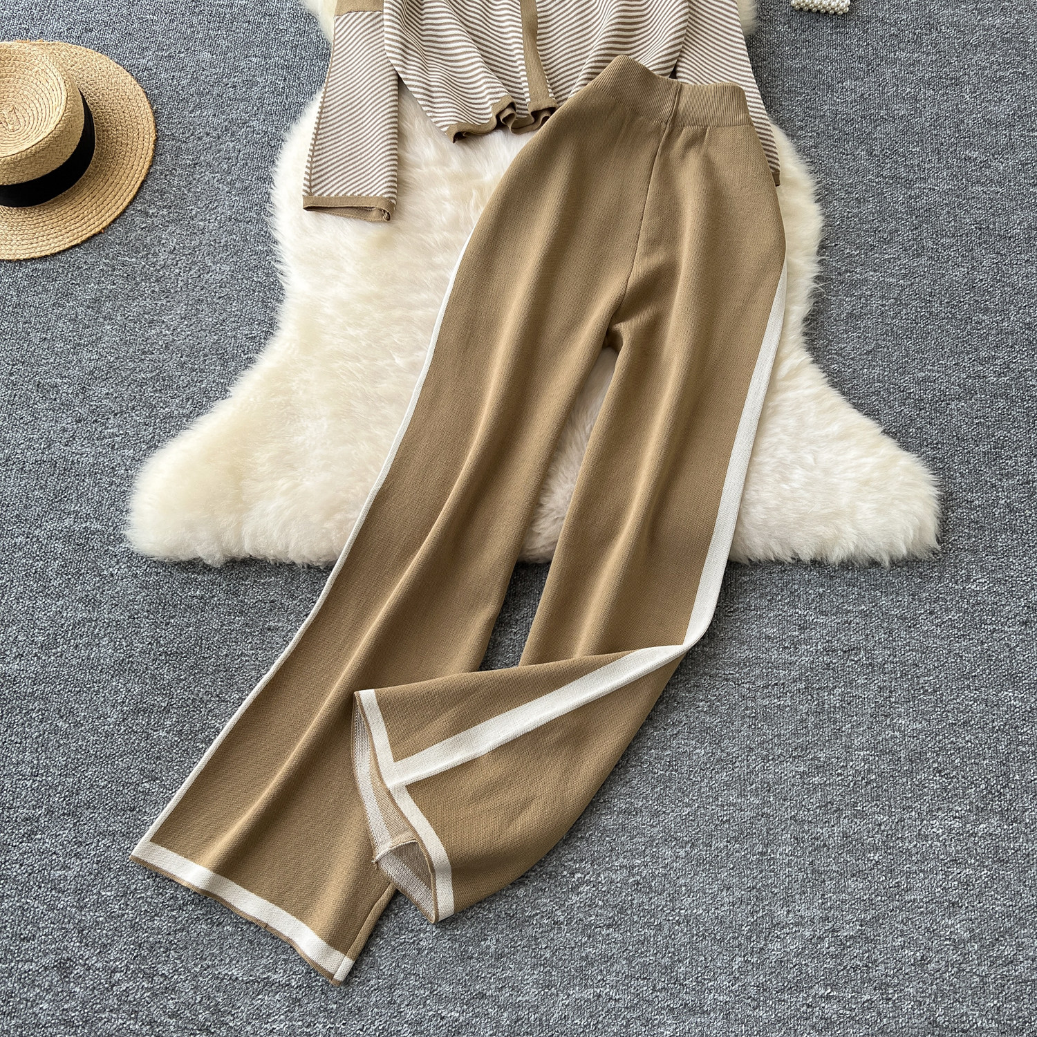 Experience comfort and style with this women’s knitted V-neck sweater and high-waist jogging pants set. Made from a breathable, anti-static polyester and cotton blend, this loose-fit two-piece is perfect for winter wear. Its striped design adds a casual yet trendy touch, while the washable and wrinkle-resistant fabric ensures easy care. Ideal for everyday relaxation or casual outings, this set combines practicality with effortless fashion.
