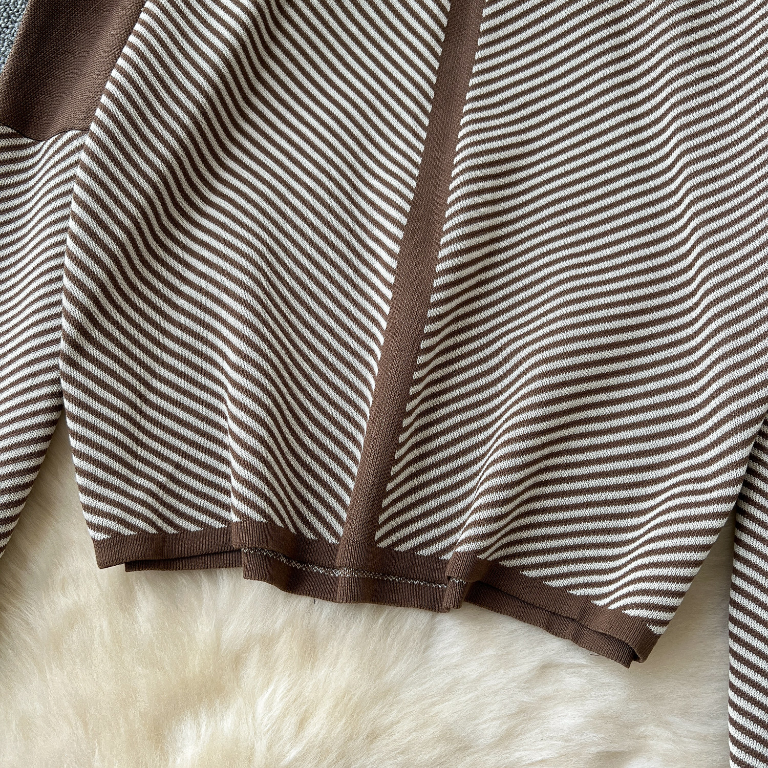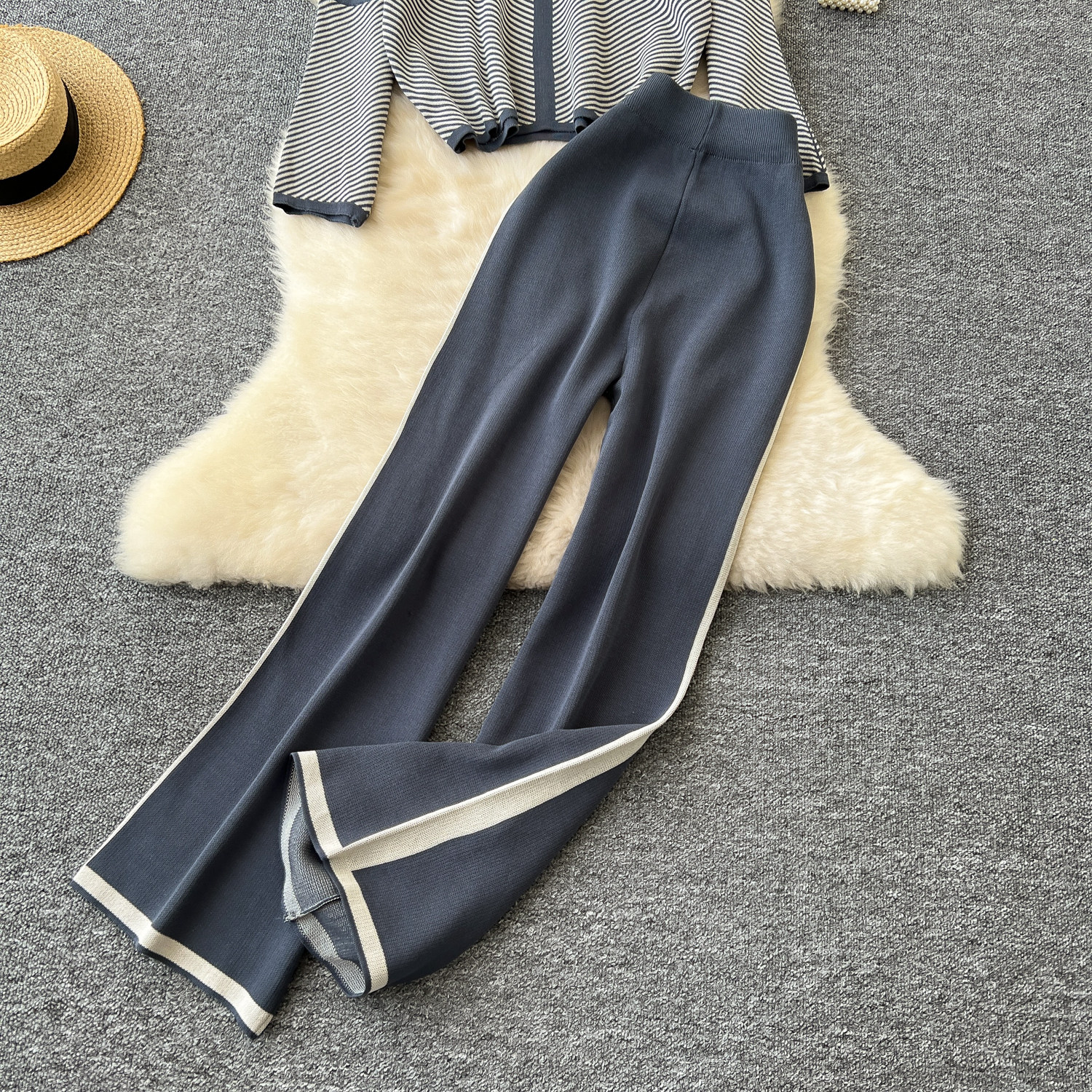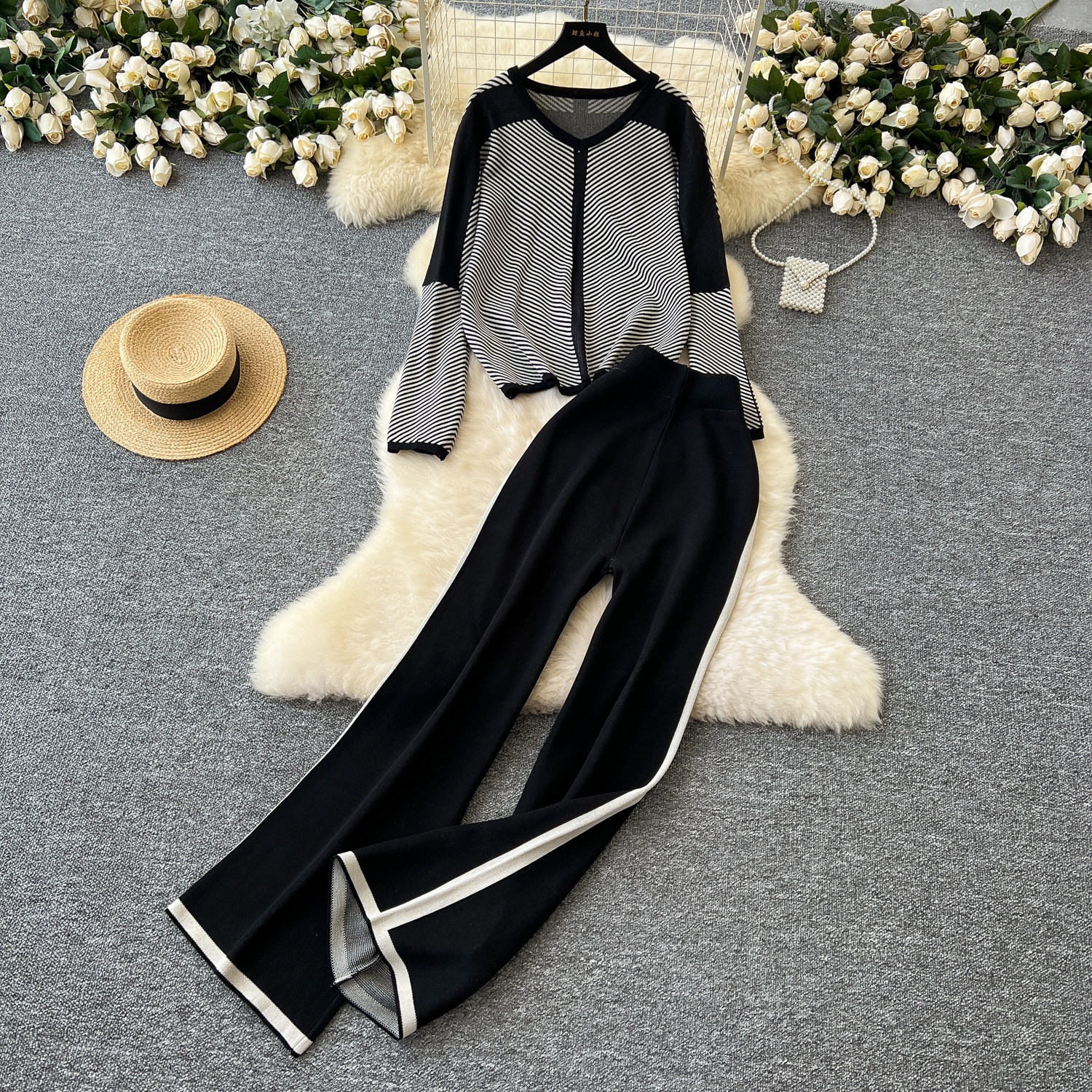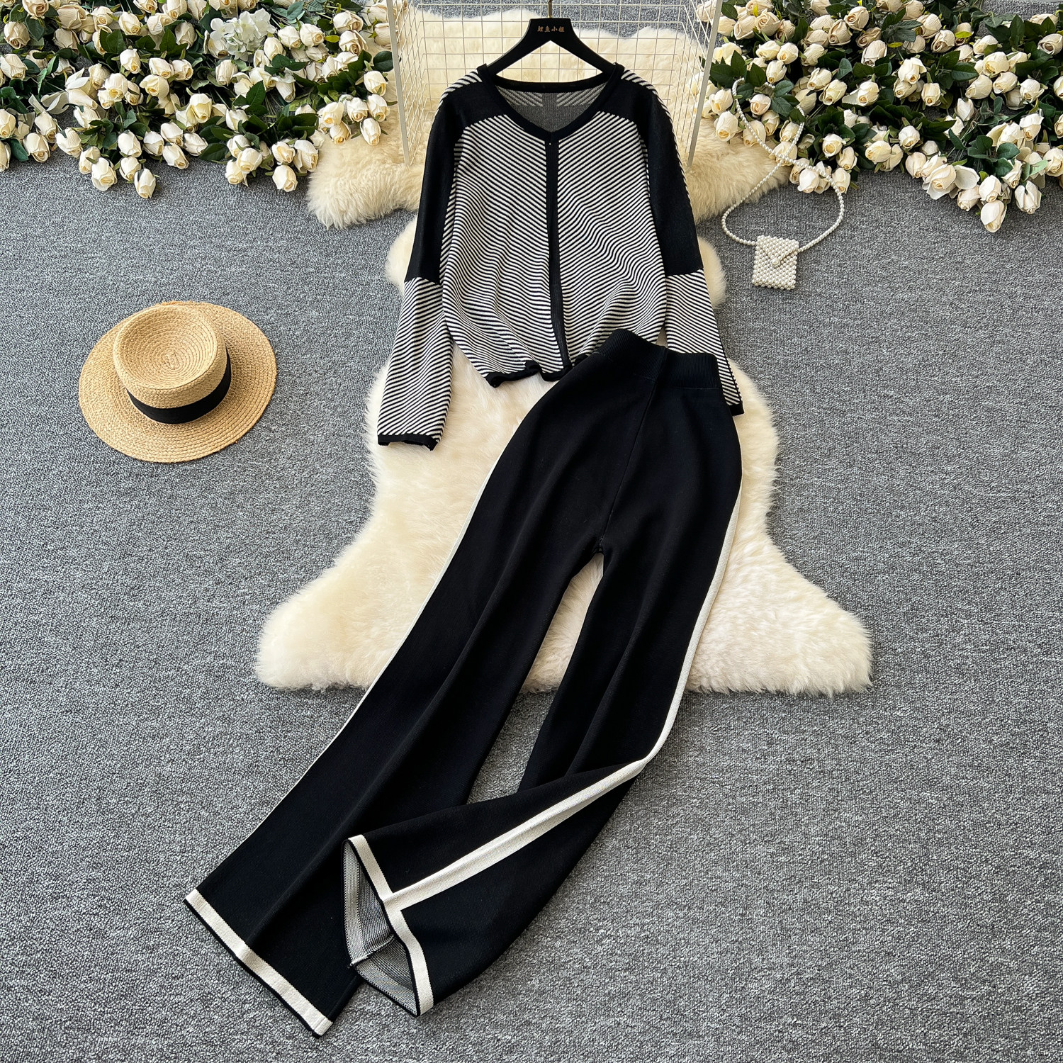 Experience comfort and style with this women’s knitted V-neck sweater and high-waist jogging pants set. Made from a breathable, anti-static polyester and cotton blend, this loose-fit two-piece is perfect for winter wear. Its striped design adds a casual yet trendy touch, while the washable and wrinkle-resistant fabric ensures easy care. Ideal for everyday relaxation or casual outings, this set combines practicality with effortless fashion.