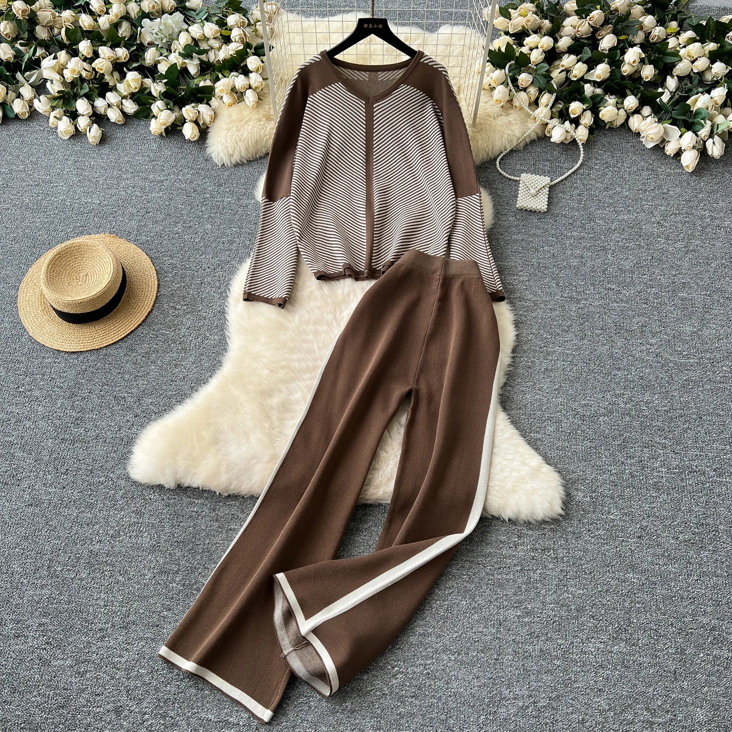 Women Knitted V-Neck Sweater and Pants High Waist Jogging Suits