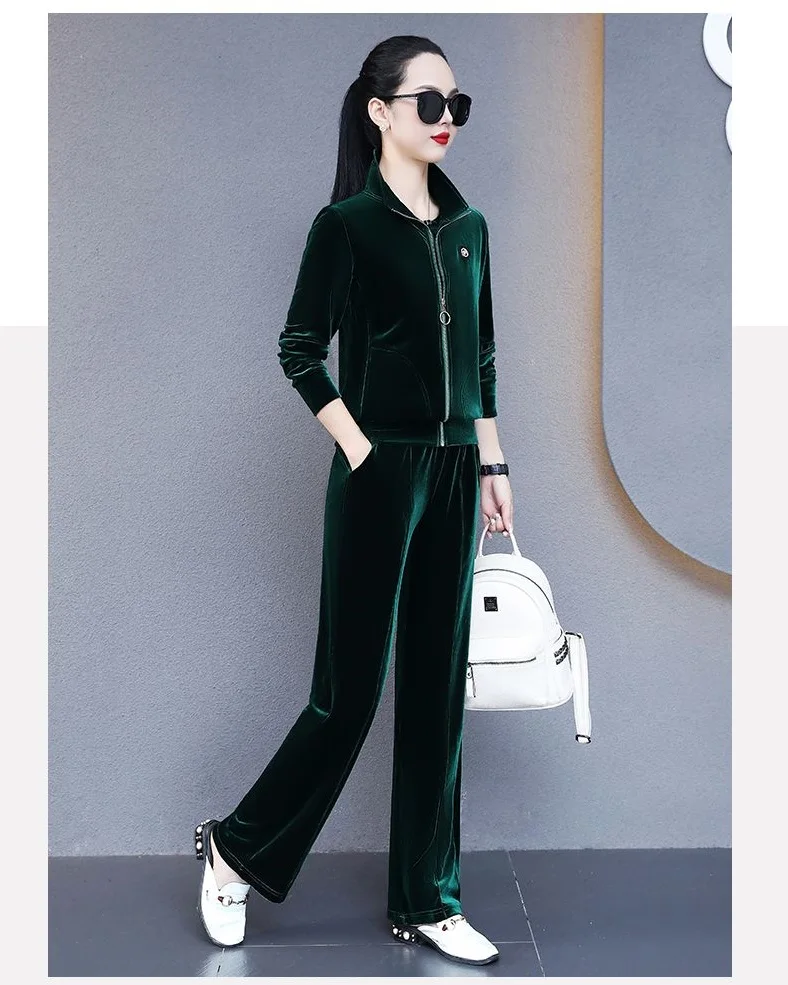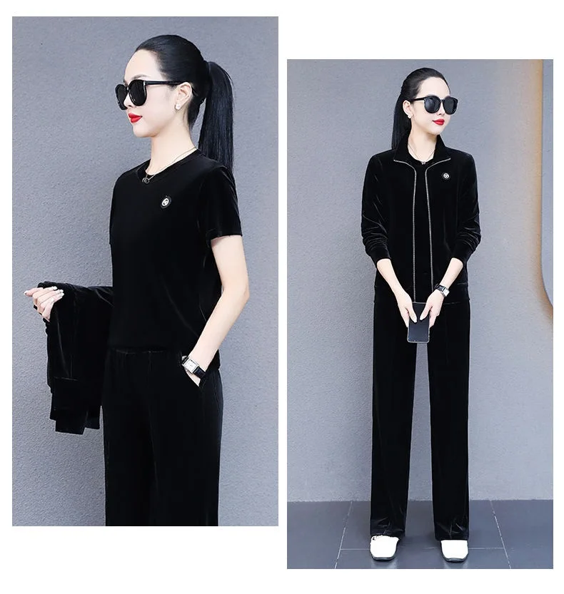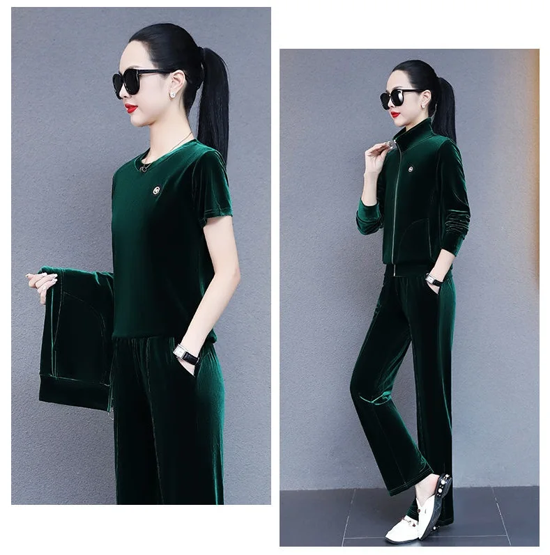 Women Leisure Sports Suits Spring Autumn Velvet Gold Running Tracksuit Oversize 3-Piece Set