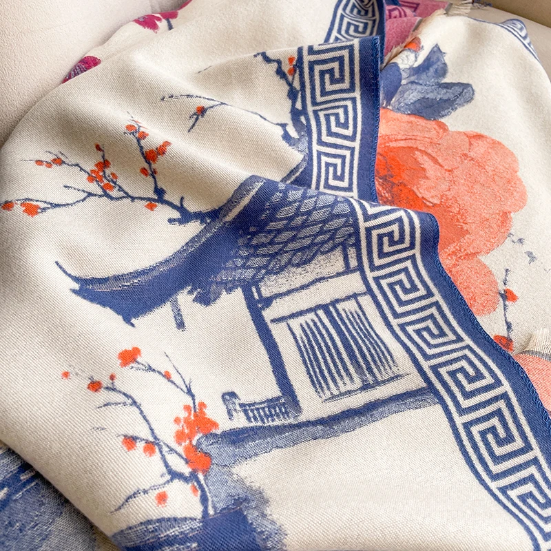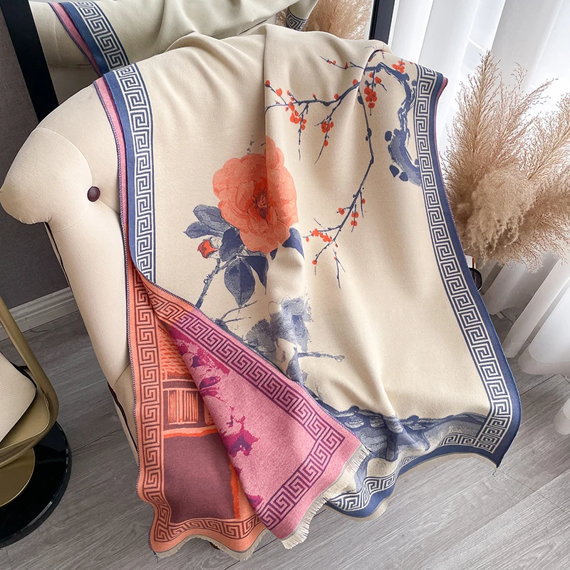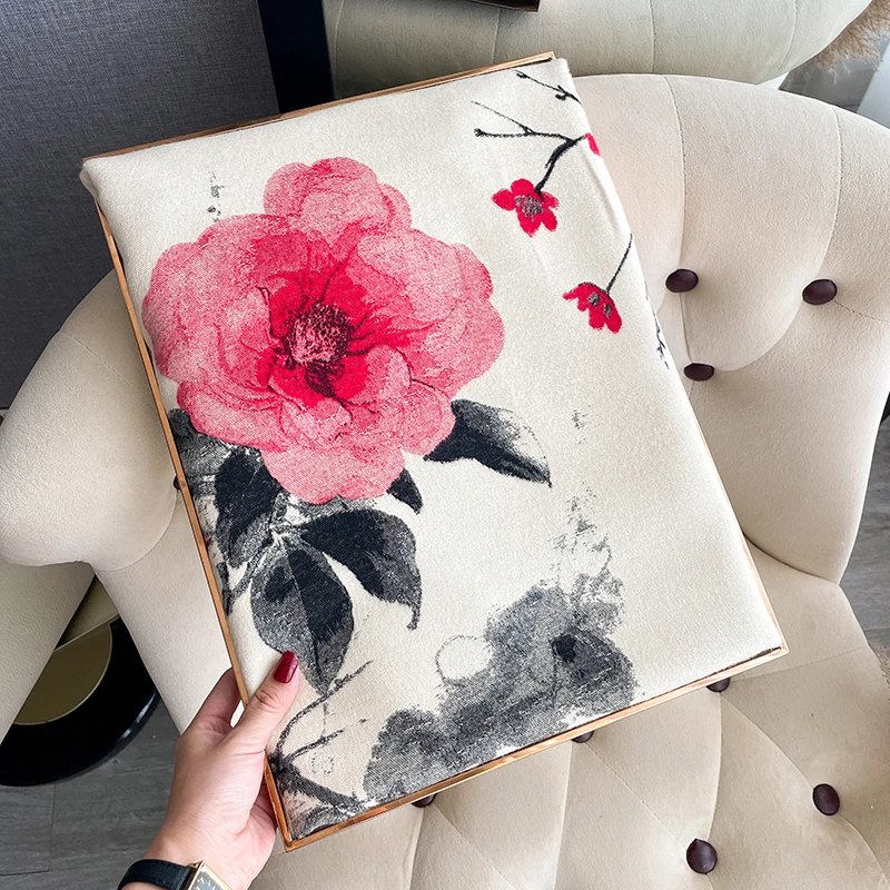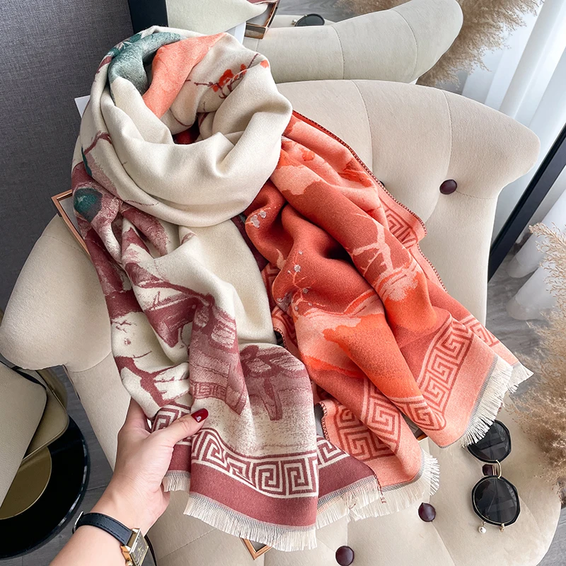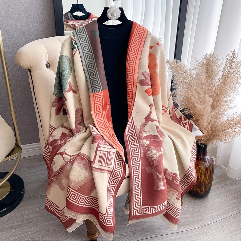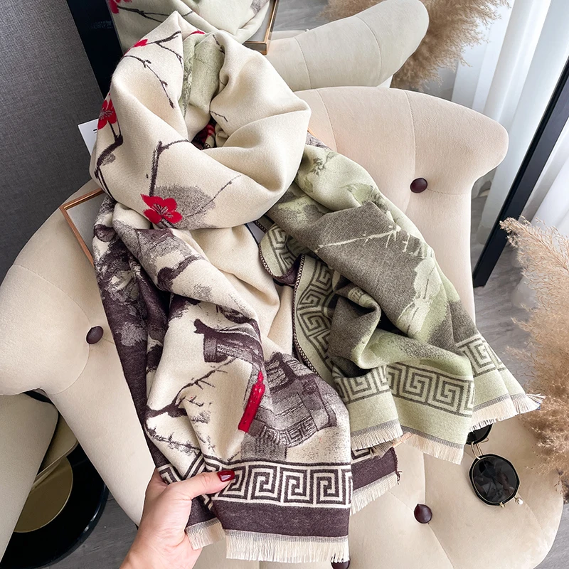 Women Luxury Winter Warm Ink Wash painting Scarf Pashmina Shawl