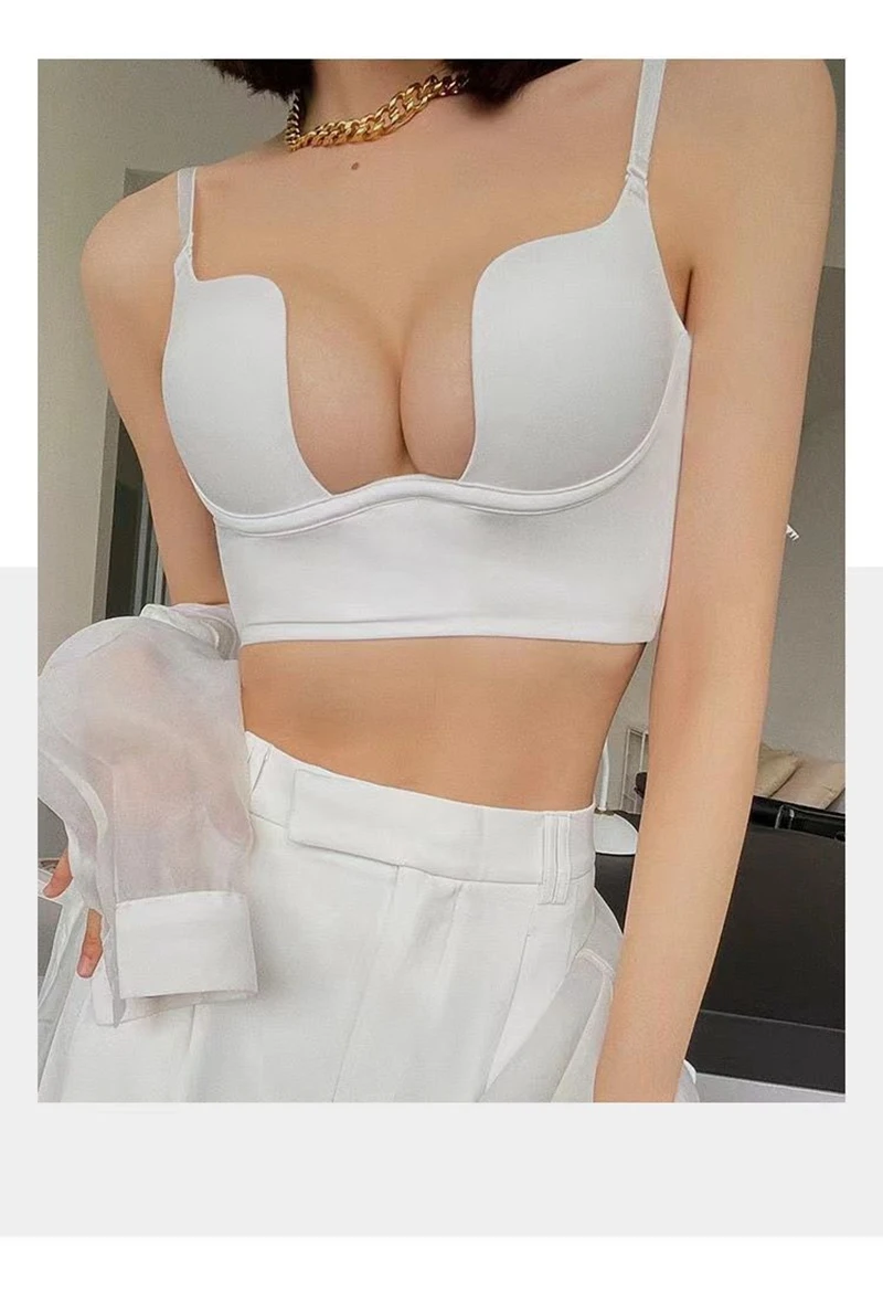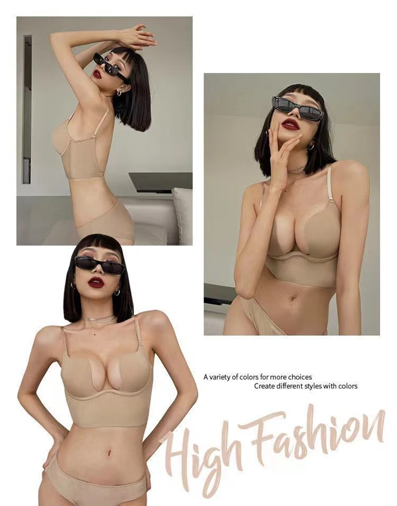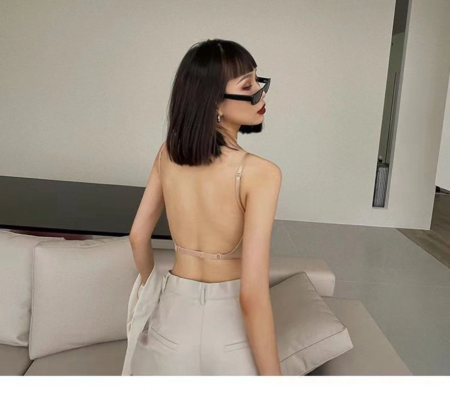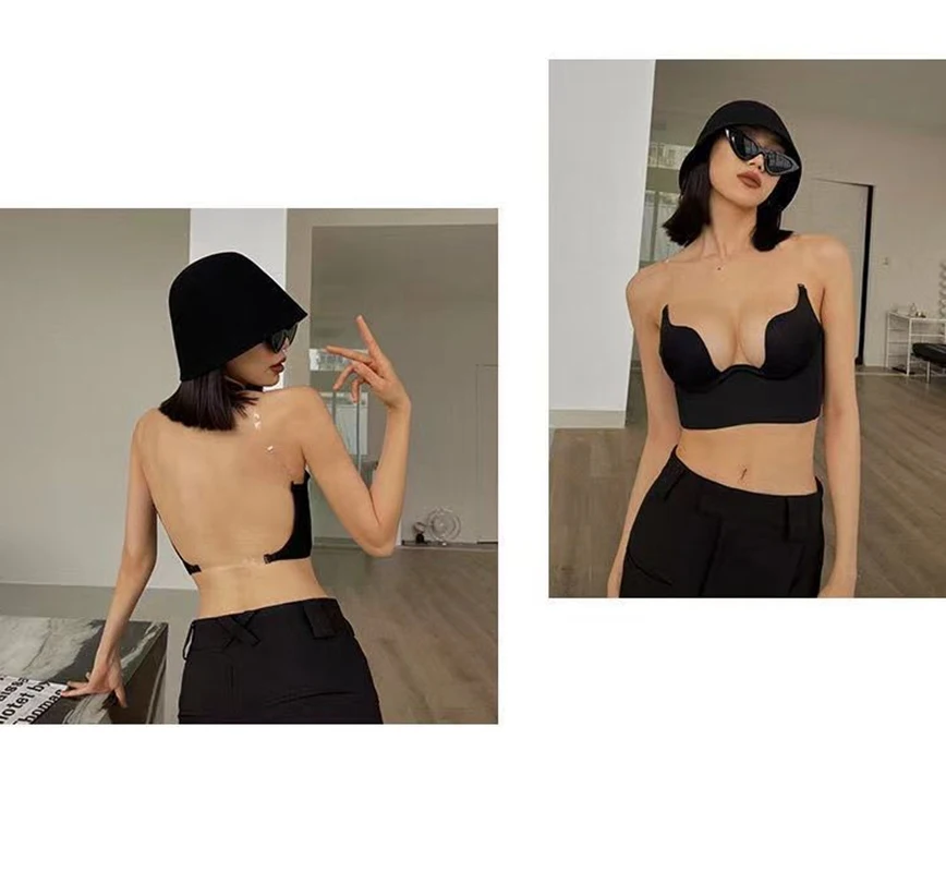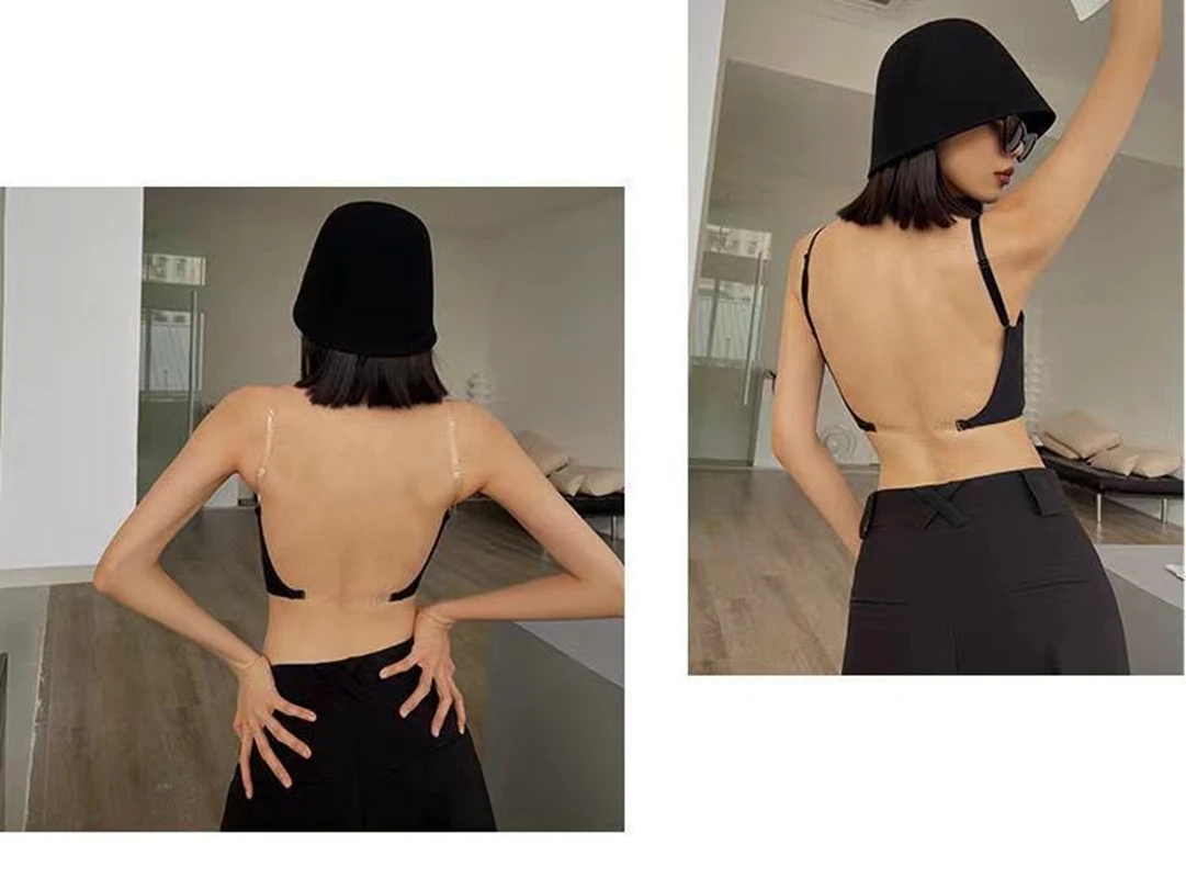 Women Sexy Invisible Bra with Transparent Strap Deep U Plunge Bras Backless