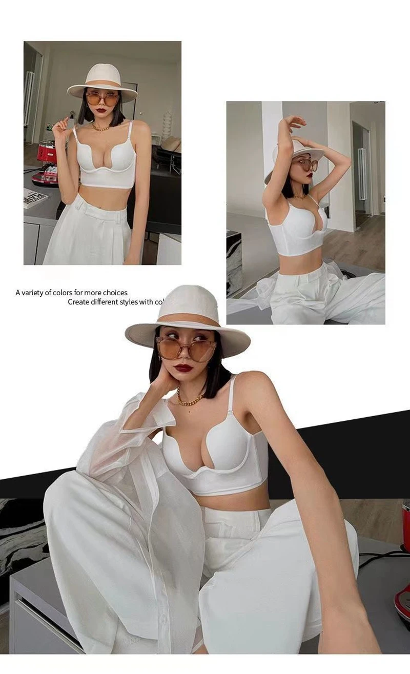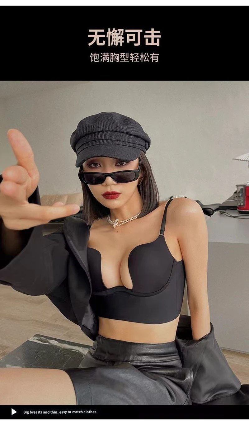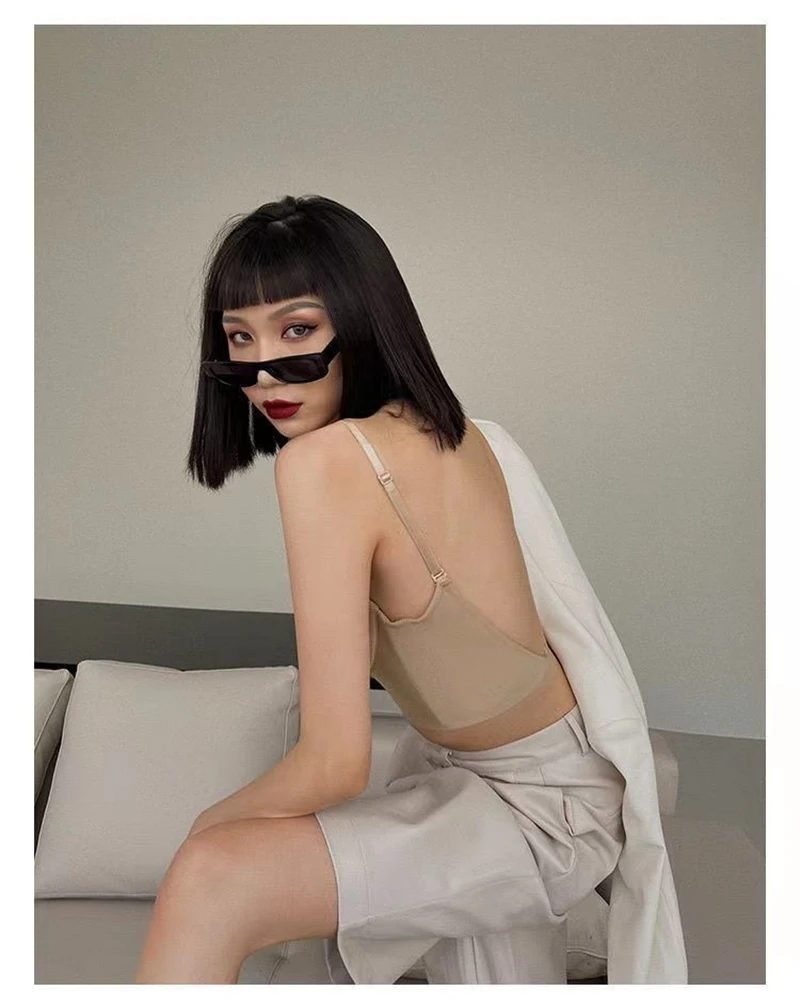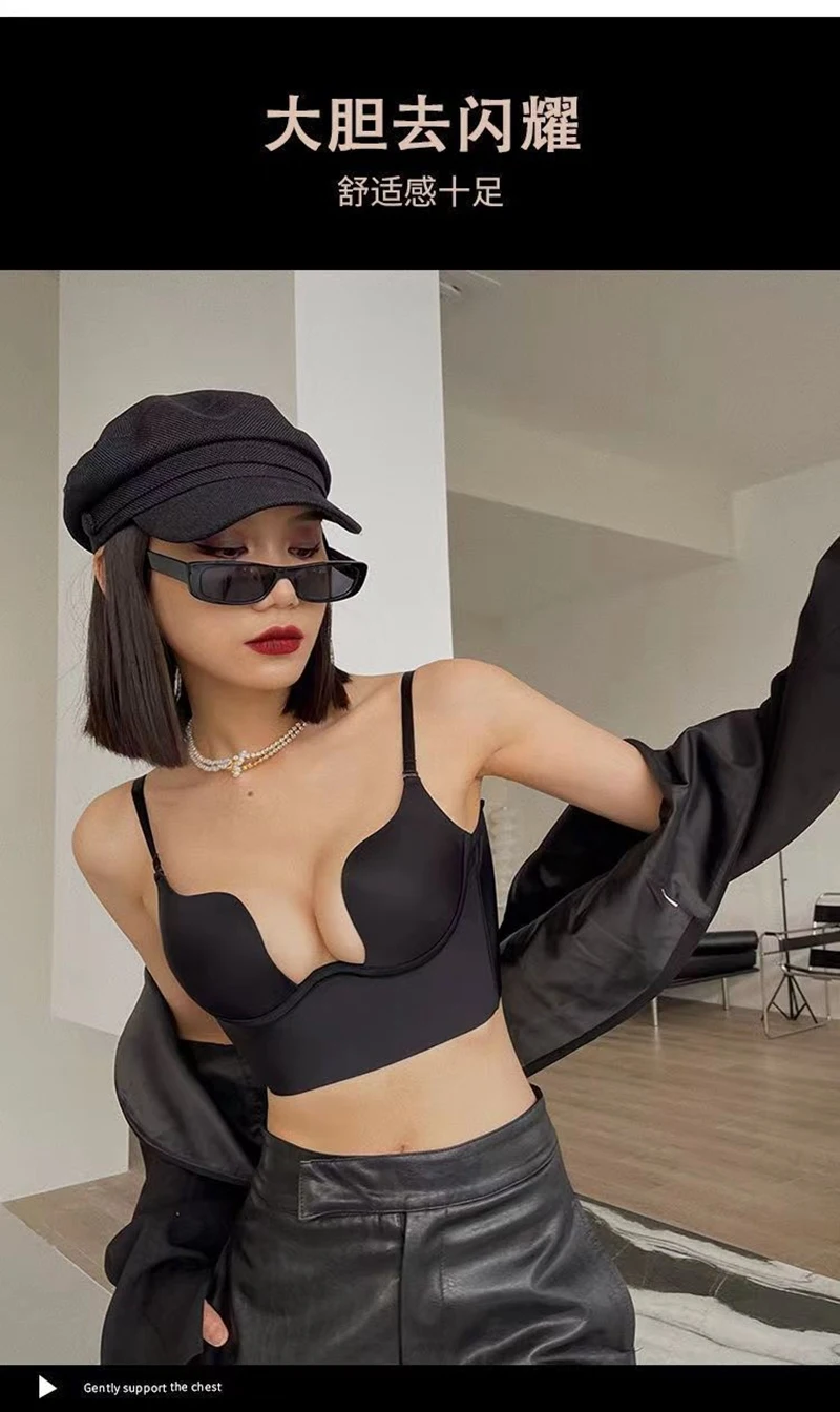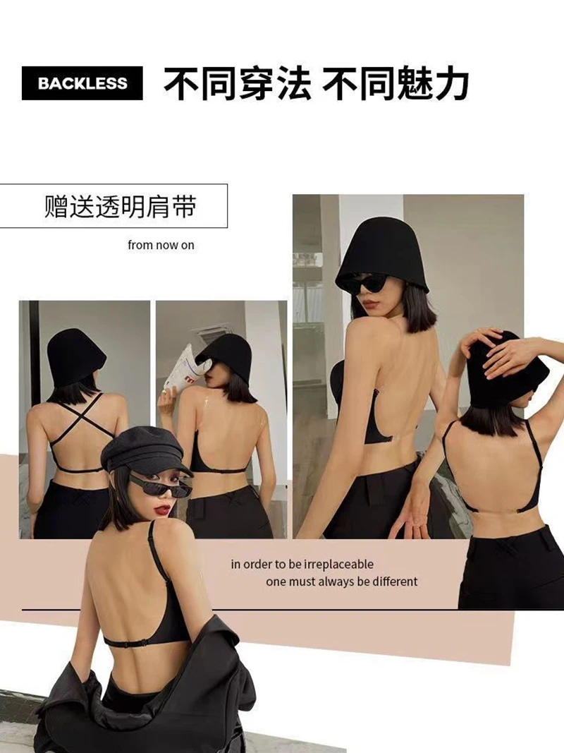 Women Sexy Invisible Bra with Transparent Strap Deep U Plunge Bras Backless