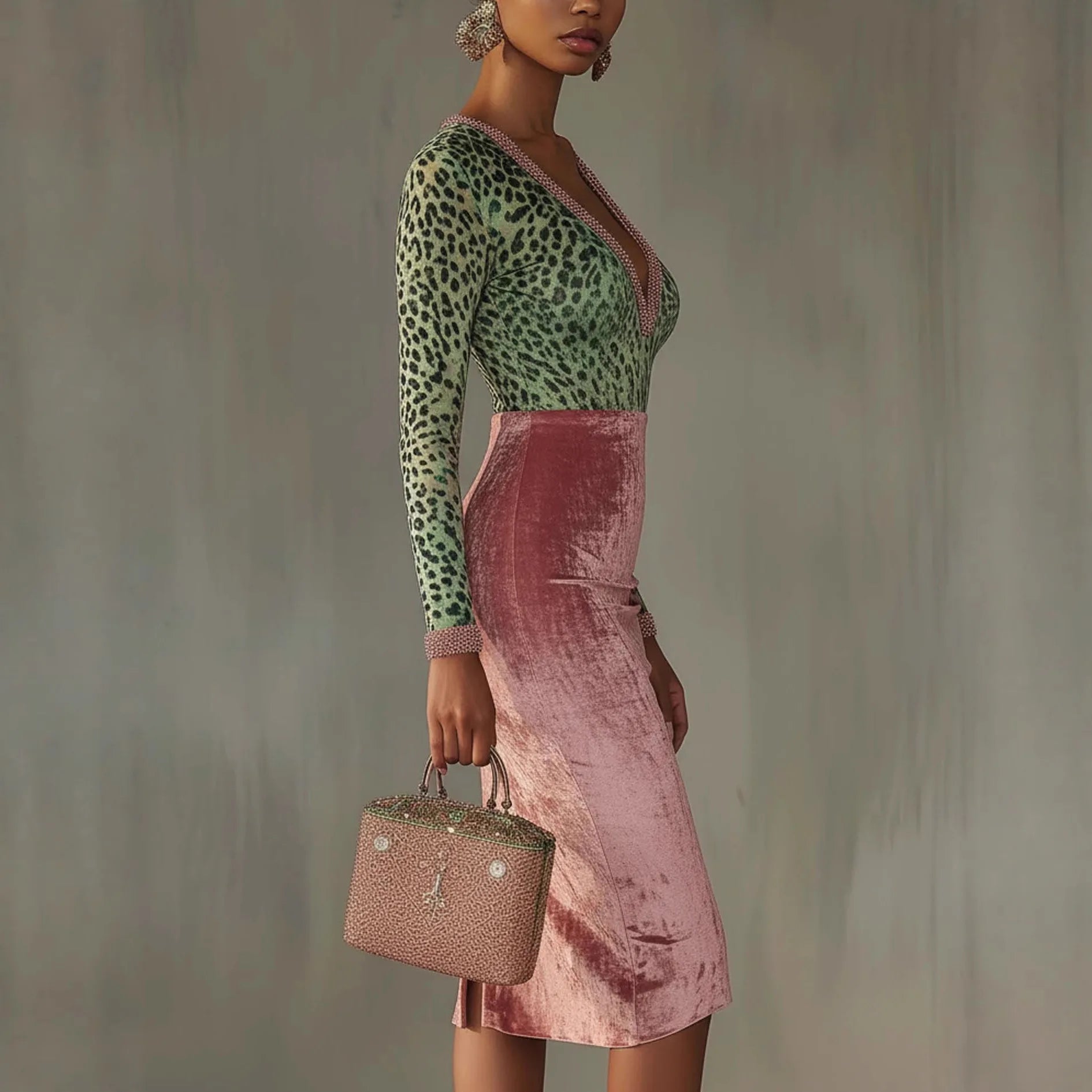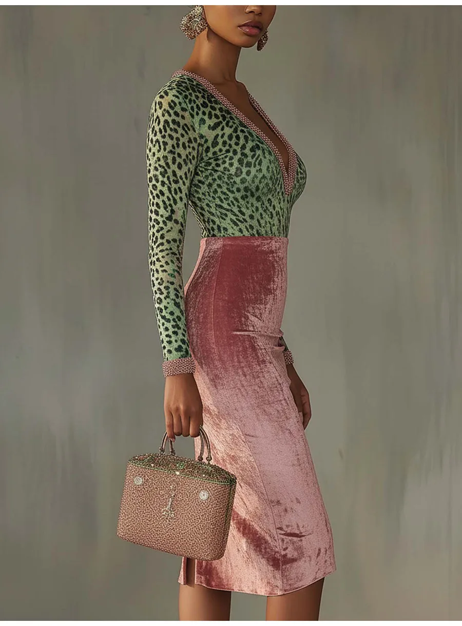 Women Sexy Leopard Print Slim Long Dress Autumn Long Sleeve Deep V-neck Bodycon Maxi Dresses