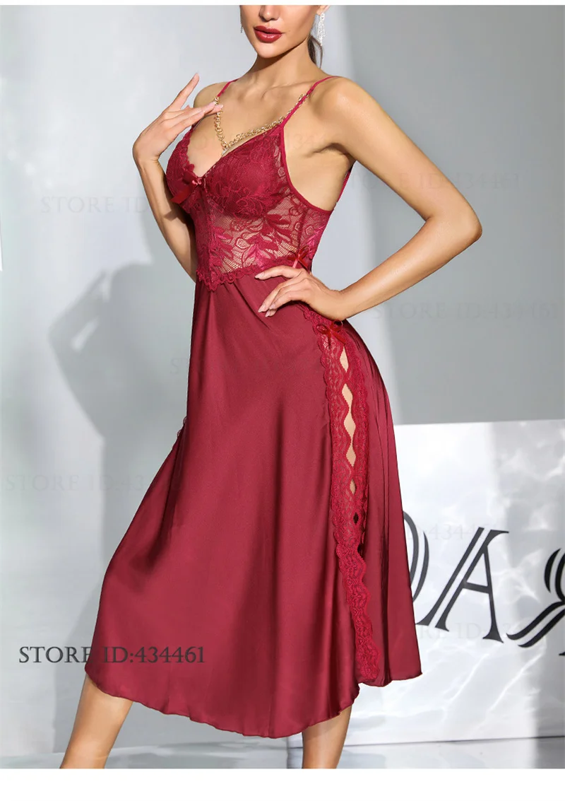 Women Sexy Lingerie Long Nightgown Ice Silk Chemise Sleepwear