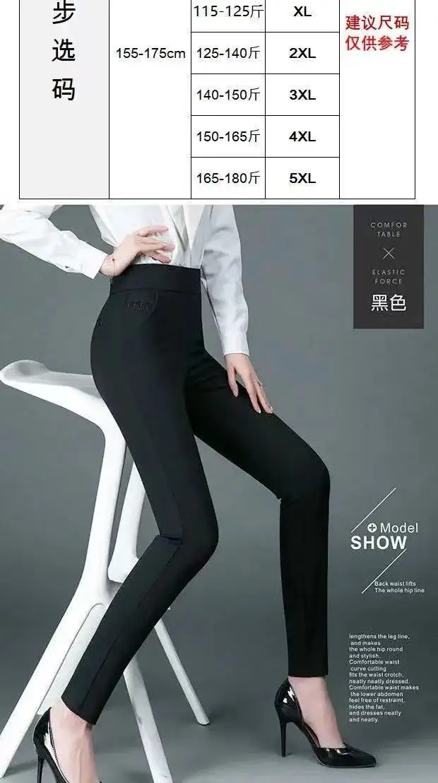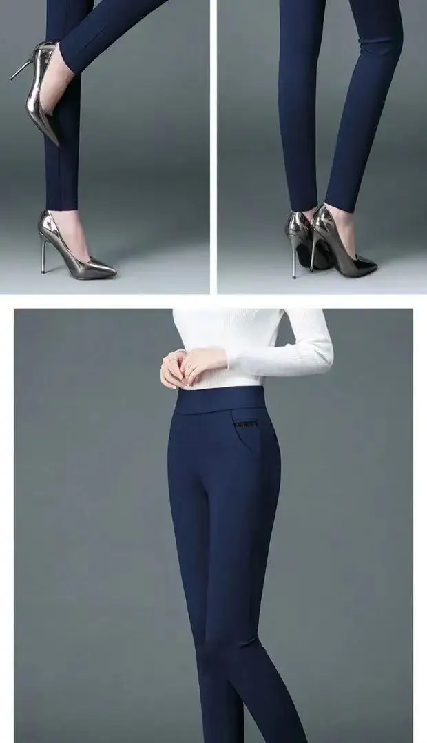 Women Slim Pencil Pants Spring Autumn High Waist Elastic Pockets Solid Elegant