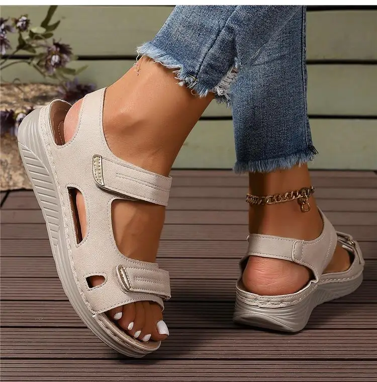 Elevate your summer style with our Women Summer Walking Sandals. These wedge shoes (3-5cm heel) combine comfort and stability with their non-slip design. Featuring adjustable hook & loop straps and durable artificial leather uppers, they're perfect for casual outings. The PU insole cushions every step while the rubber outsole ensures reliable traction. True to size and thoughtfully constructed with front and rear straps, these open-style leisure sandals will become your go-to footwear for warm-weather adventures and casual gatherings.