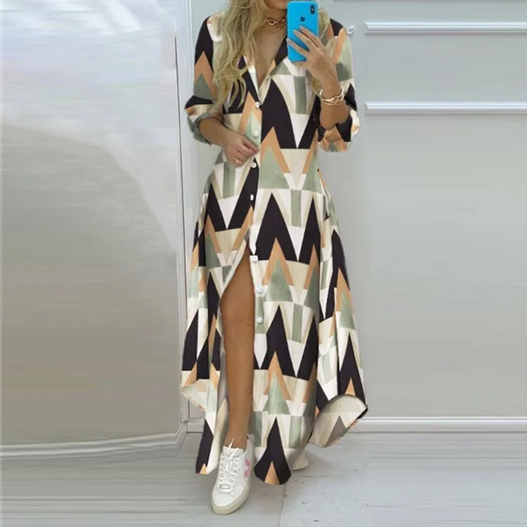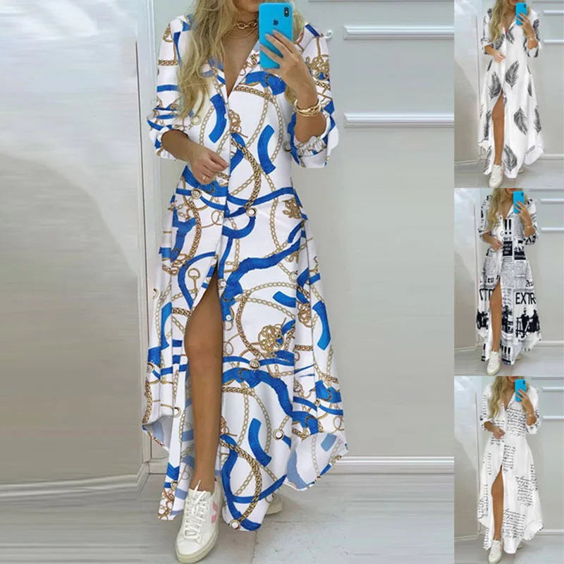 Women Vintage Long Casual Printed Dress Women