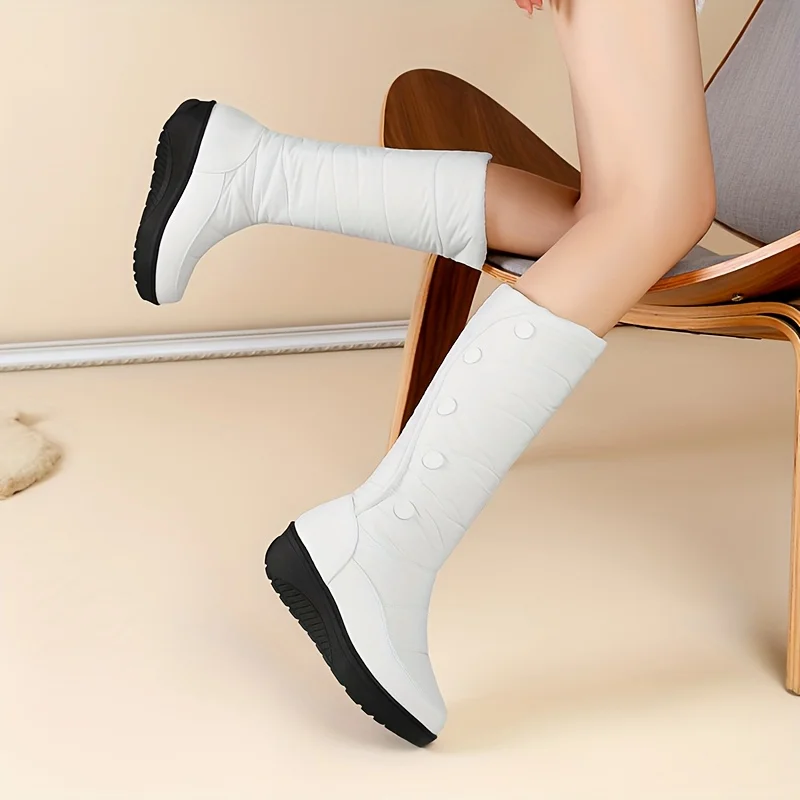 Women Winter Warm Casual Comfy Furry Faux Fur Snow Boots Platform Wedges Heel Pull On Waterproof
