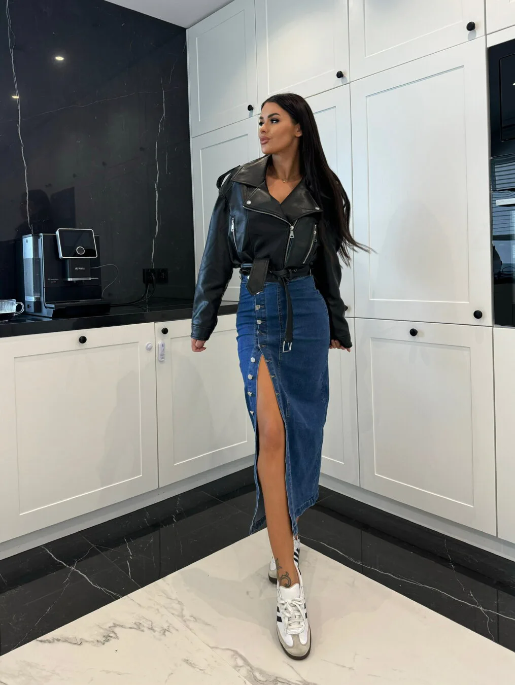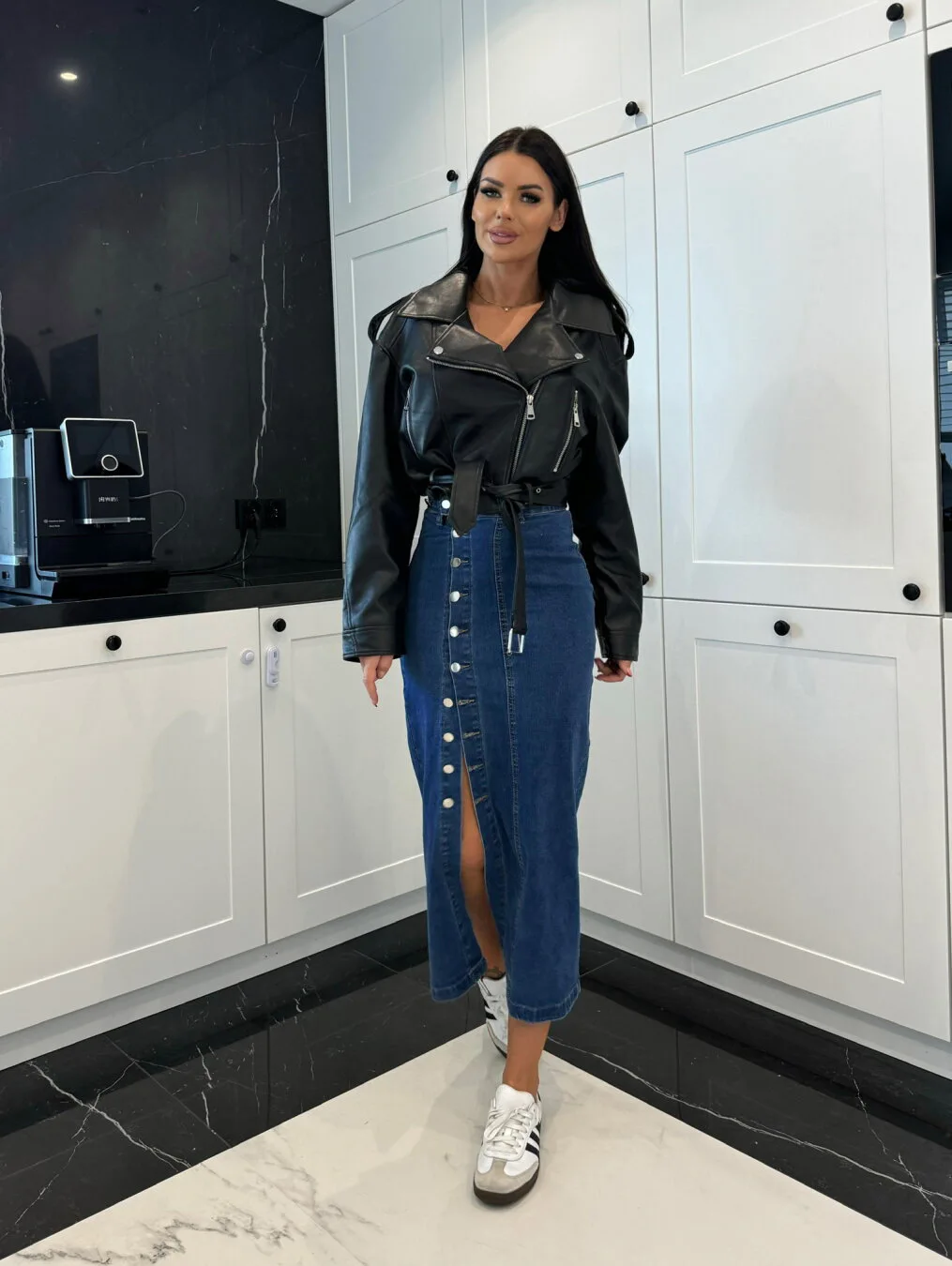Women's Buttons Split Half-body Denim Skirt High Waist Slim Hip