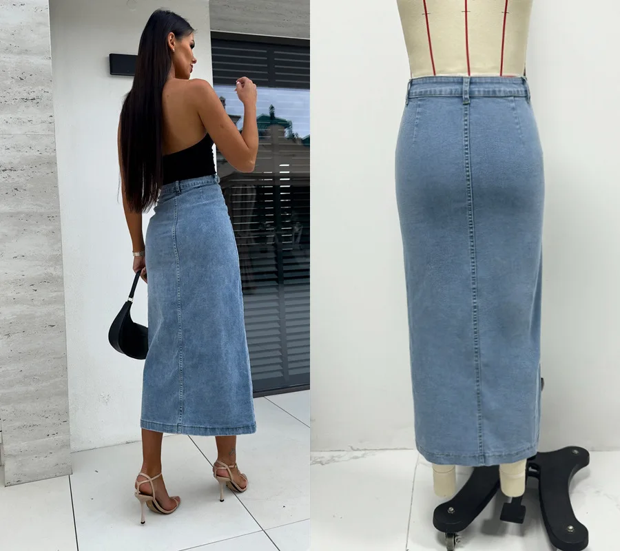 Experience the superior quality and stylish details of the Women's Buttons Split Half-body Denim Skirt High Waist Slim Hip Skirt, designed for fashion-forward women who value craftsmanship. Crafted with knit weaving and adorned with button decorations, this ankle-length skirt provides a comfortable slight stretch thanks to its COTTON and POLYESTER blend. The classic solid pattern and natural waistline perfectly accentuate the STRAIGHT silhouette, making it a must-have for Spring/Summer. Prioritize comfort, fashion, and eco-friendly clothing with this versatile and vibrant skirt, designed with a Regular Fit to elevate your wardrobe and add energy and passion to your everyday look!