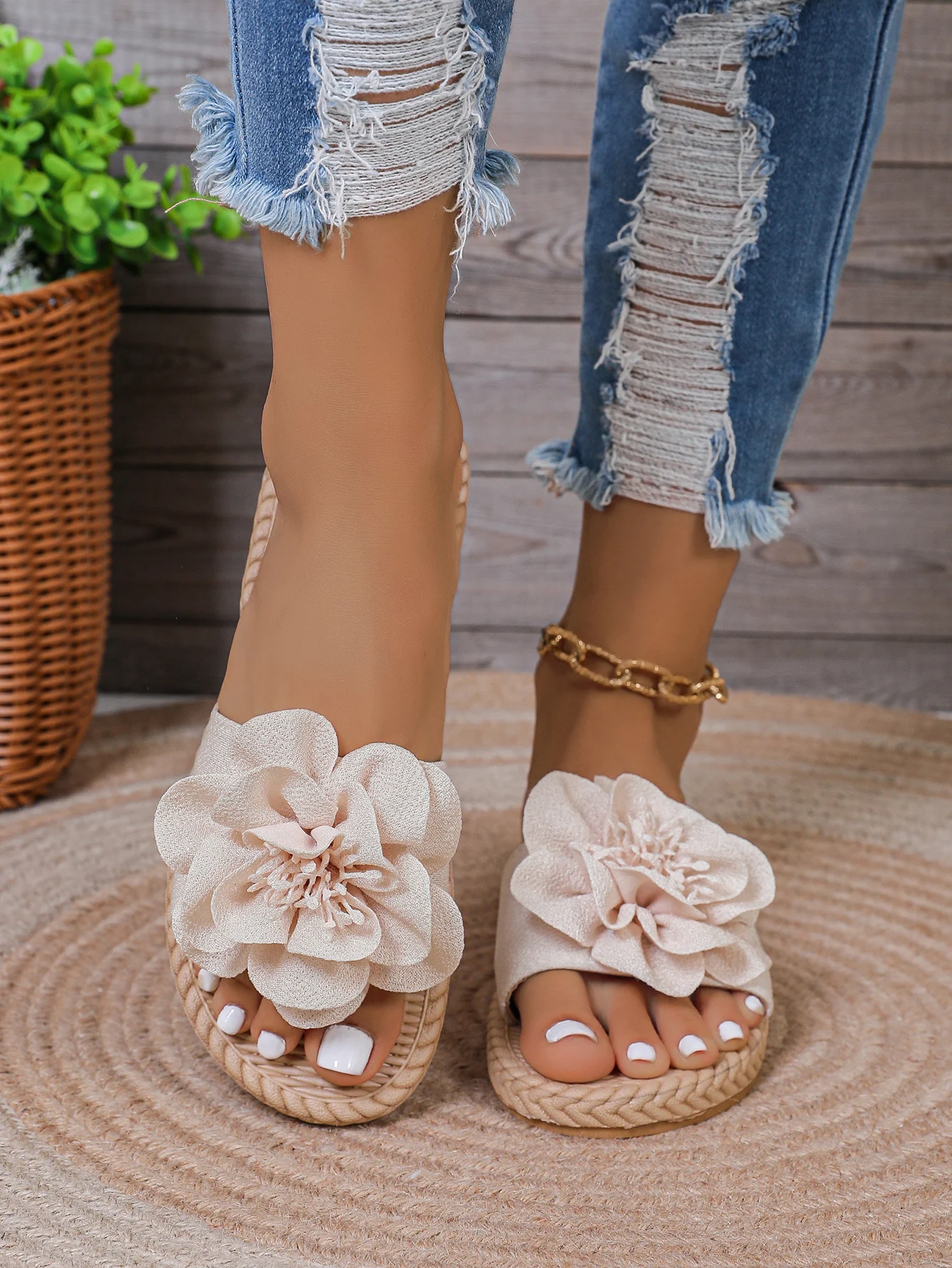 Women's Lightweight slippers with flower