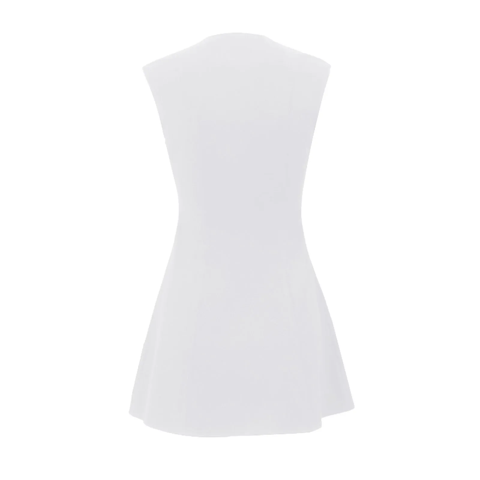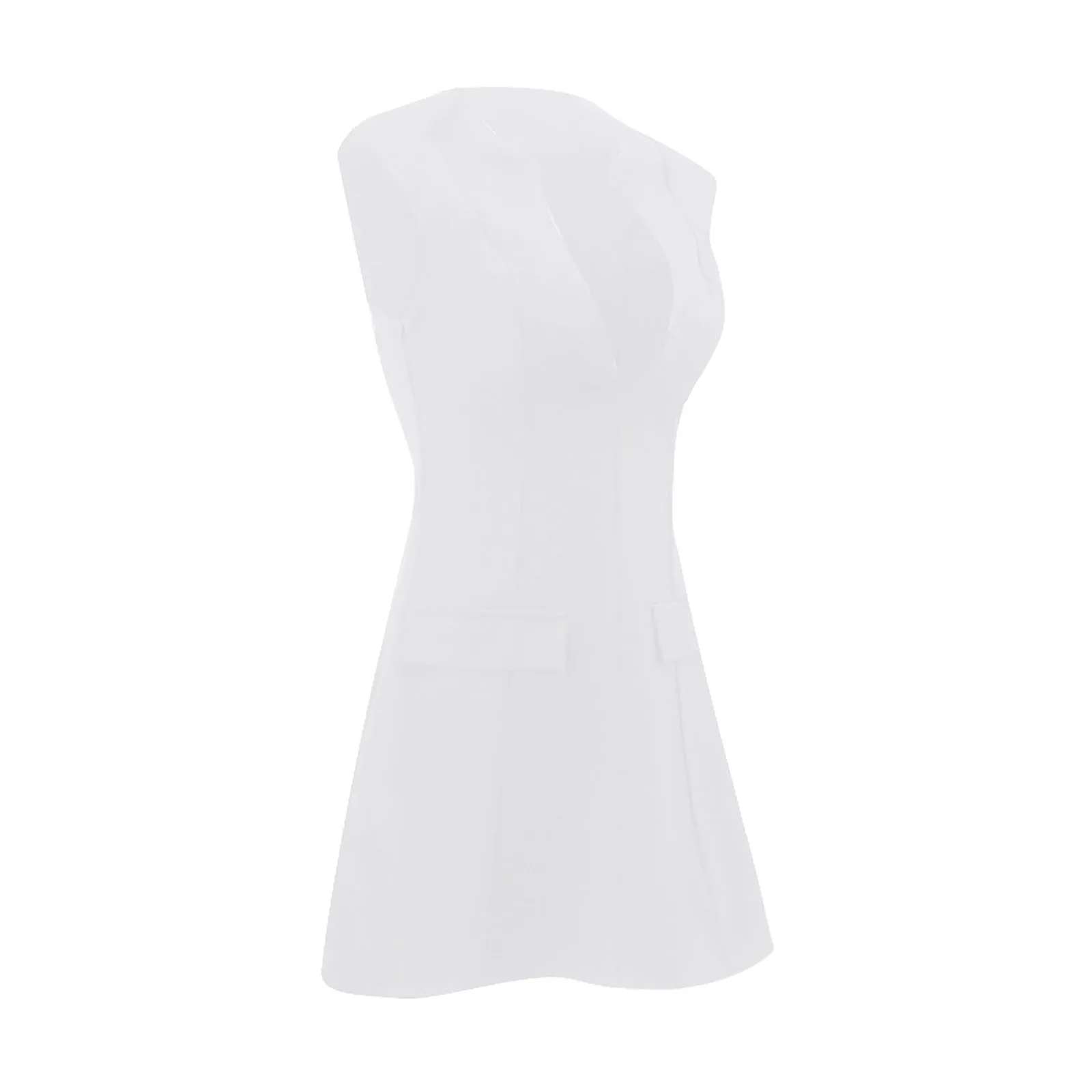 Details: A minimalist and sexy suit dress with a A-shape, featuring a classic V-neck, short sleeves, and perfect mini length.