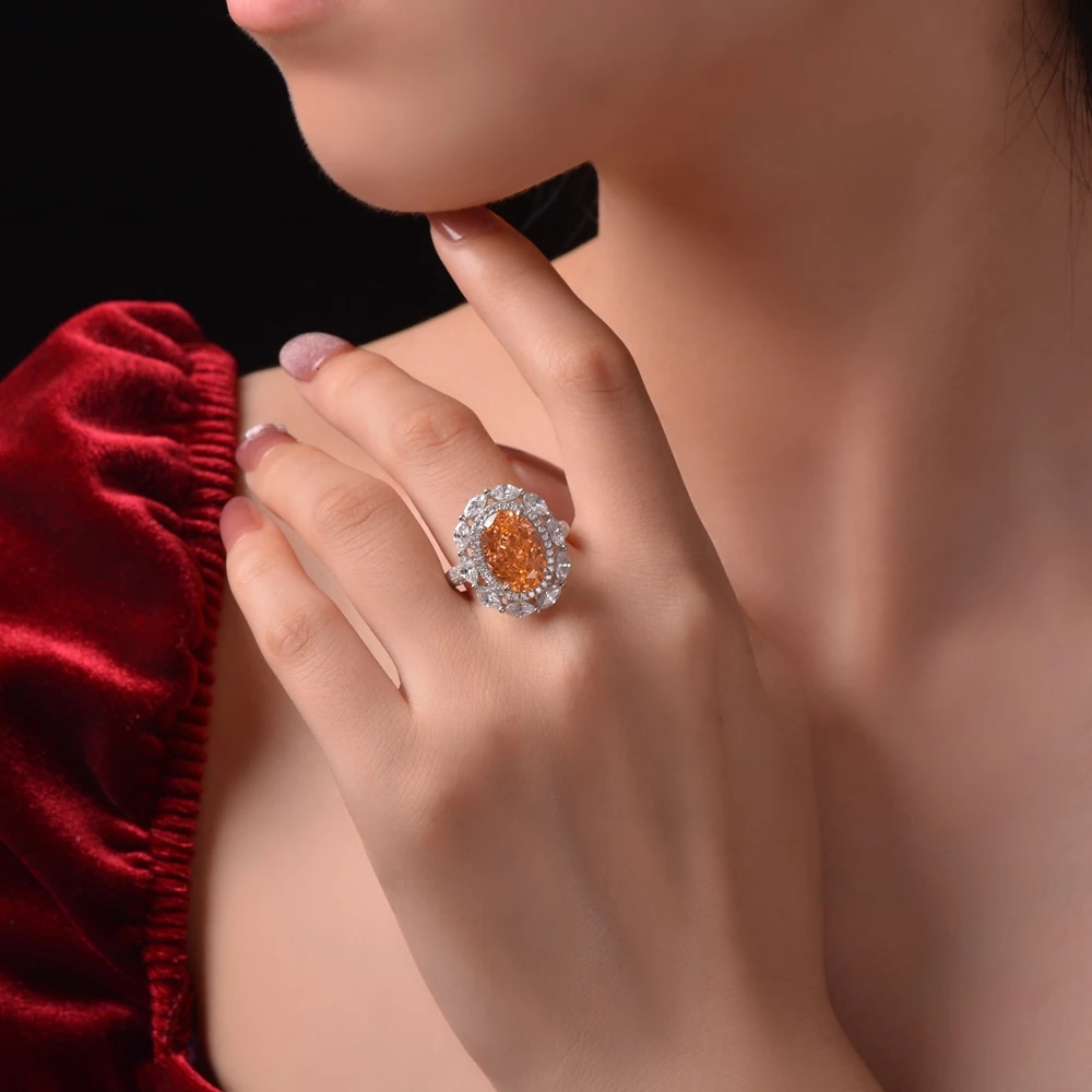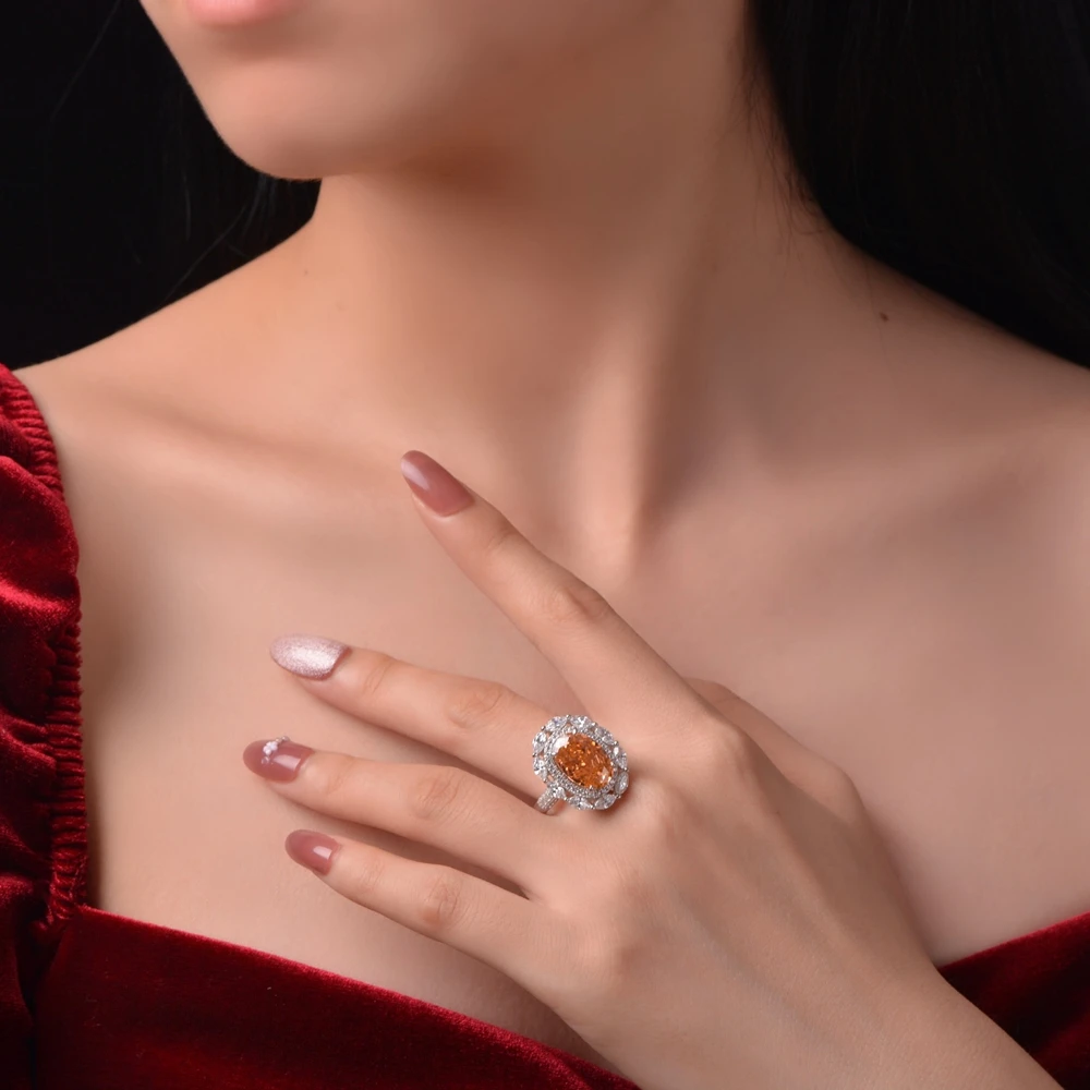 Product Details: This stunning ring is made of 925 sterling silver and features a vibrant Radiant Cut 9*13MM orange gem moissanite. It is designed for women who appreciate fine jewelry and want to make a statement. This ring is perfect for weddings and comes with a certificate of authenticity. The classic and timeless design is accented with other natural materials, adding a touch of elegance. Order yours today and add a touch of geometric charm to your jewelry collection.