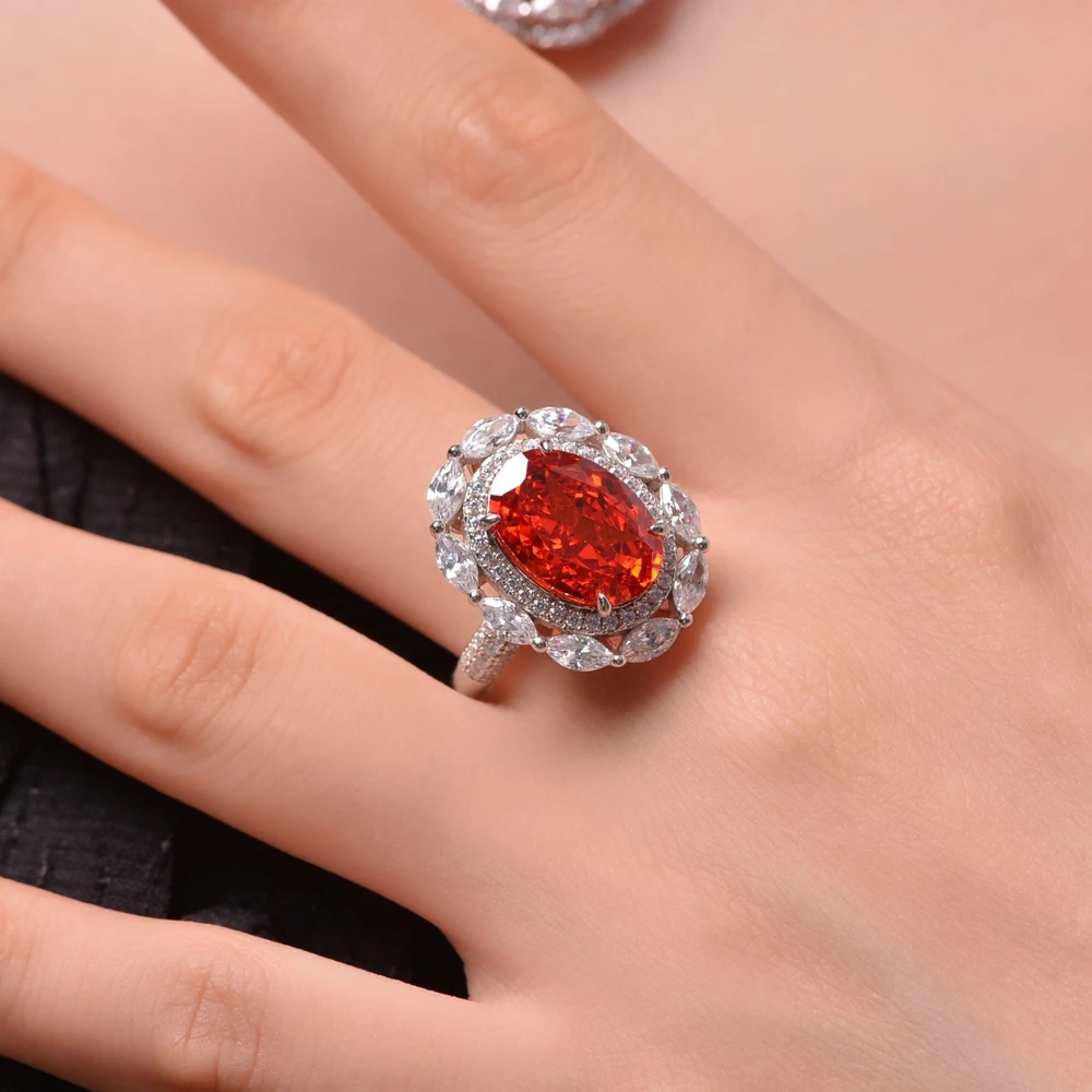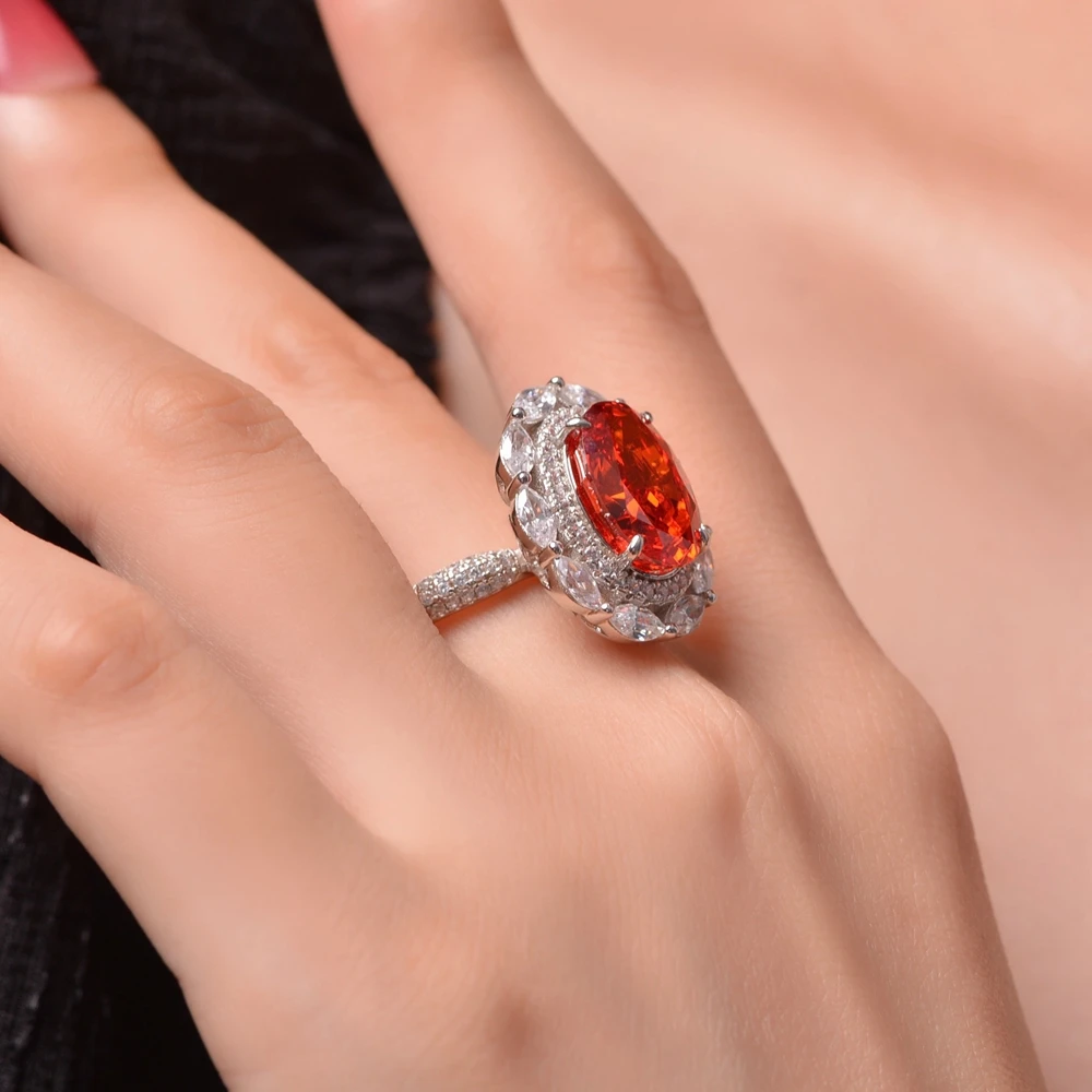 Top Quality Real 925 Sterling Silver Radiant Cut 9*13MM Orange Gem Created Moissanite Wedding Engagement Ring Fine Jewelry