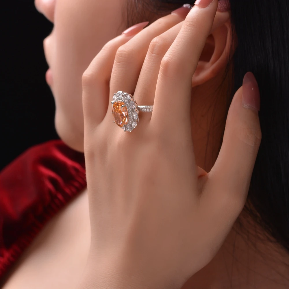 Radiant Cut 9*13MM Orange Gem Moissanite Ring 925 Sterling Silver Fine Jewelry