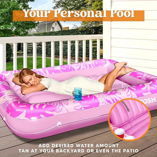 JOYFY Inflatable Tanning Pool Lounger Float 70" x 46" Pool Floats Adult with Pillow Sunbathing Bed Lounge for Summer Water Party